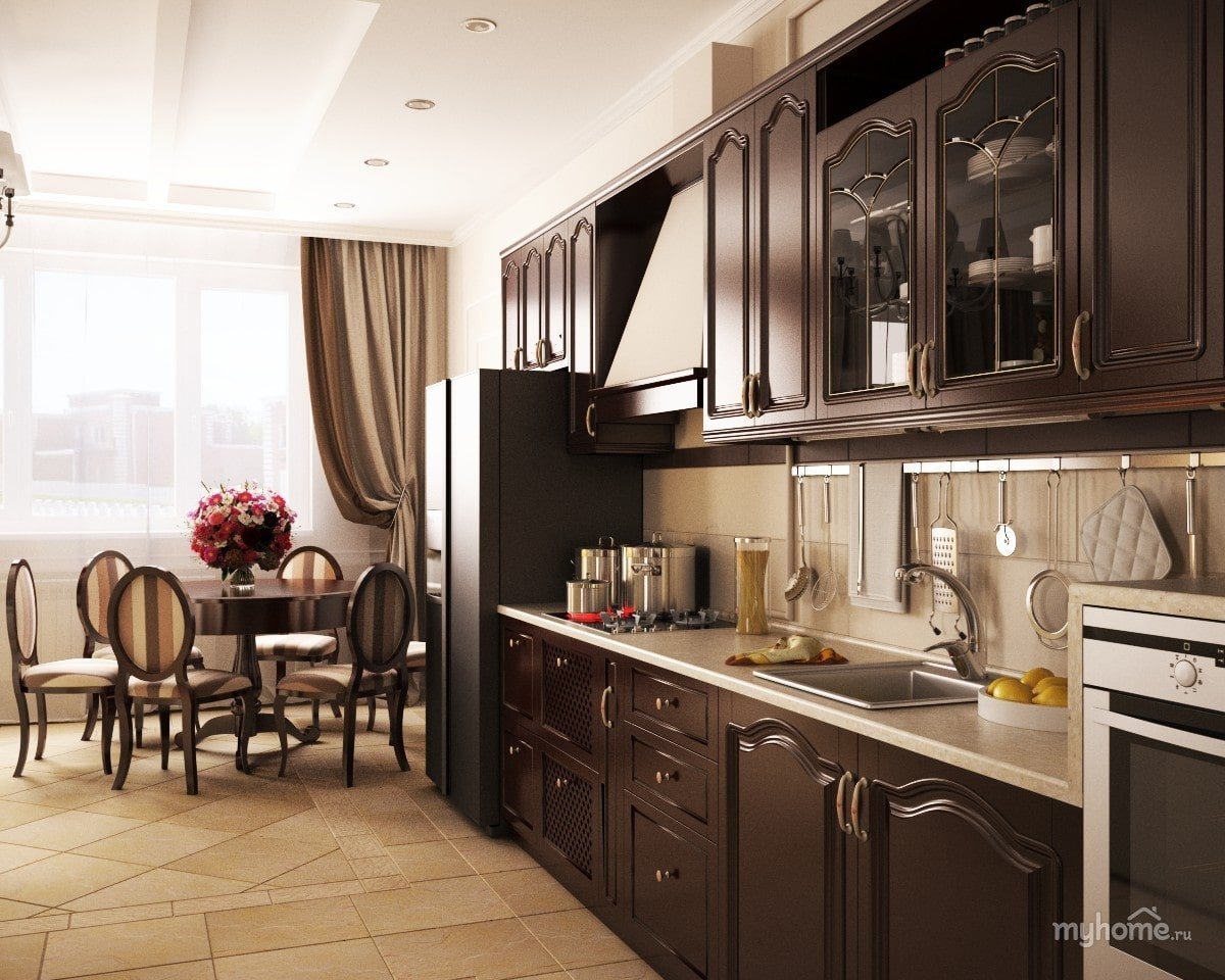 Коричневая кухня в интерьере