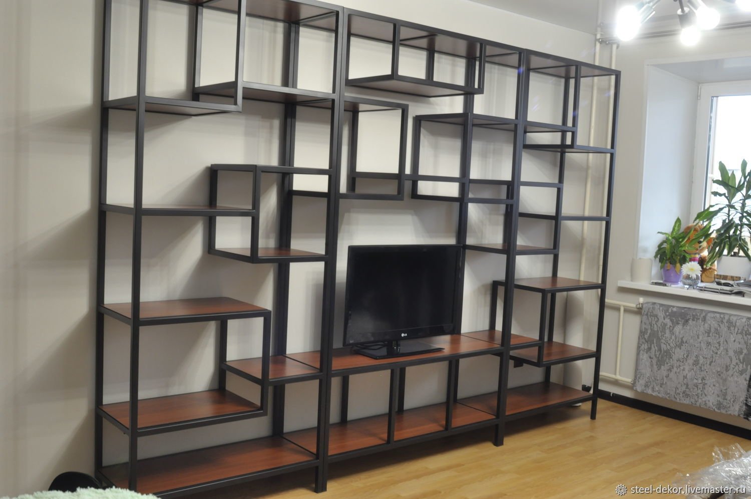 Стеллаж из металла и дерева