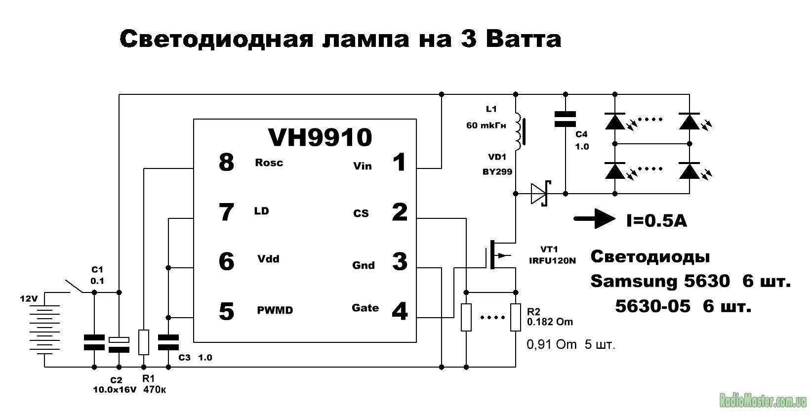 Драйвера для светодиодных ламп на 220в на микросхемах