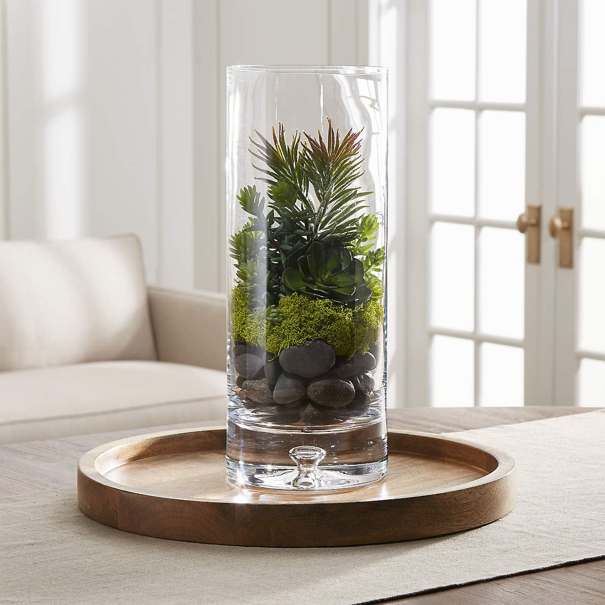 Композиция в высокой стеклянной вазе