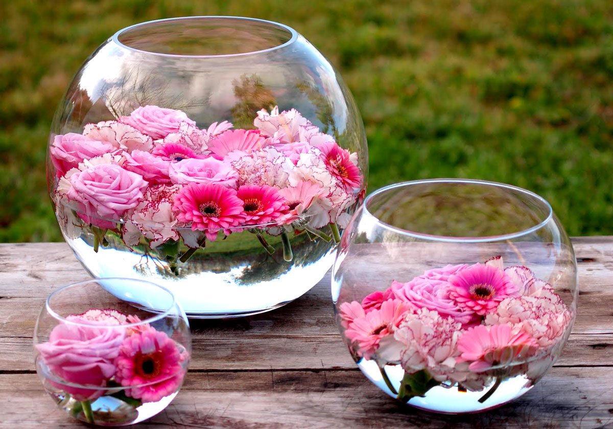 Композиции в стеклянных вазах