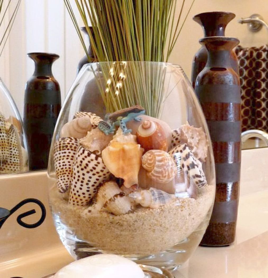 Декор с ракушками в стеклянной вазе