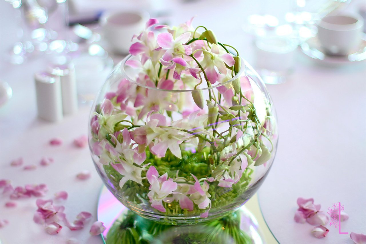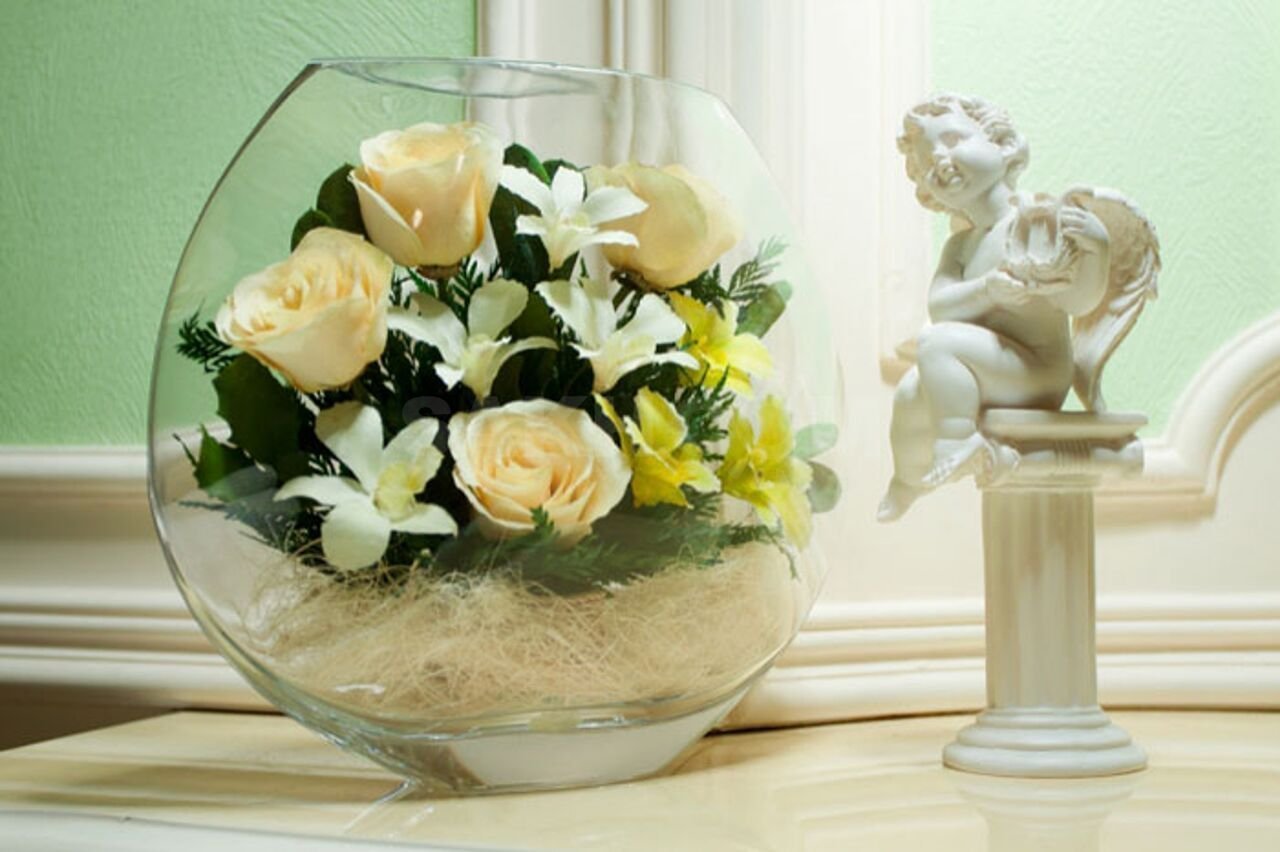 Цветочная композиция в круглой вазе