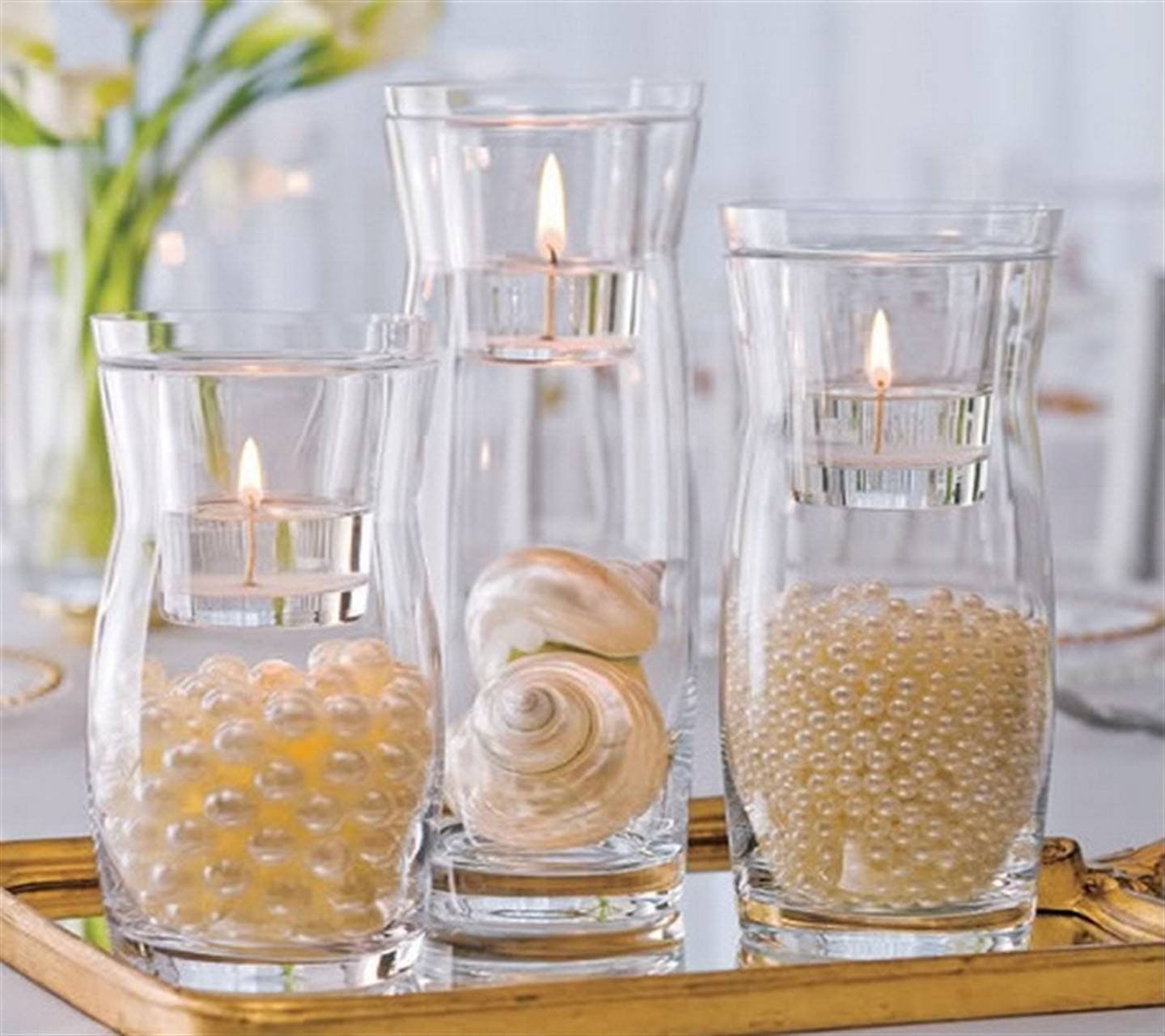 Свечи в стеклянных вазах декор