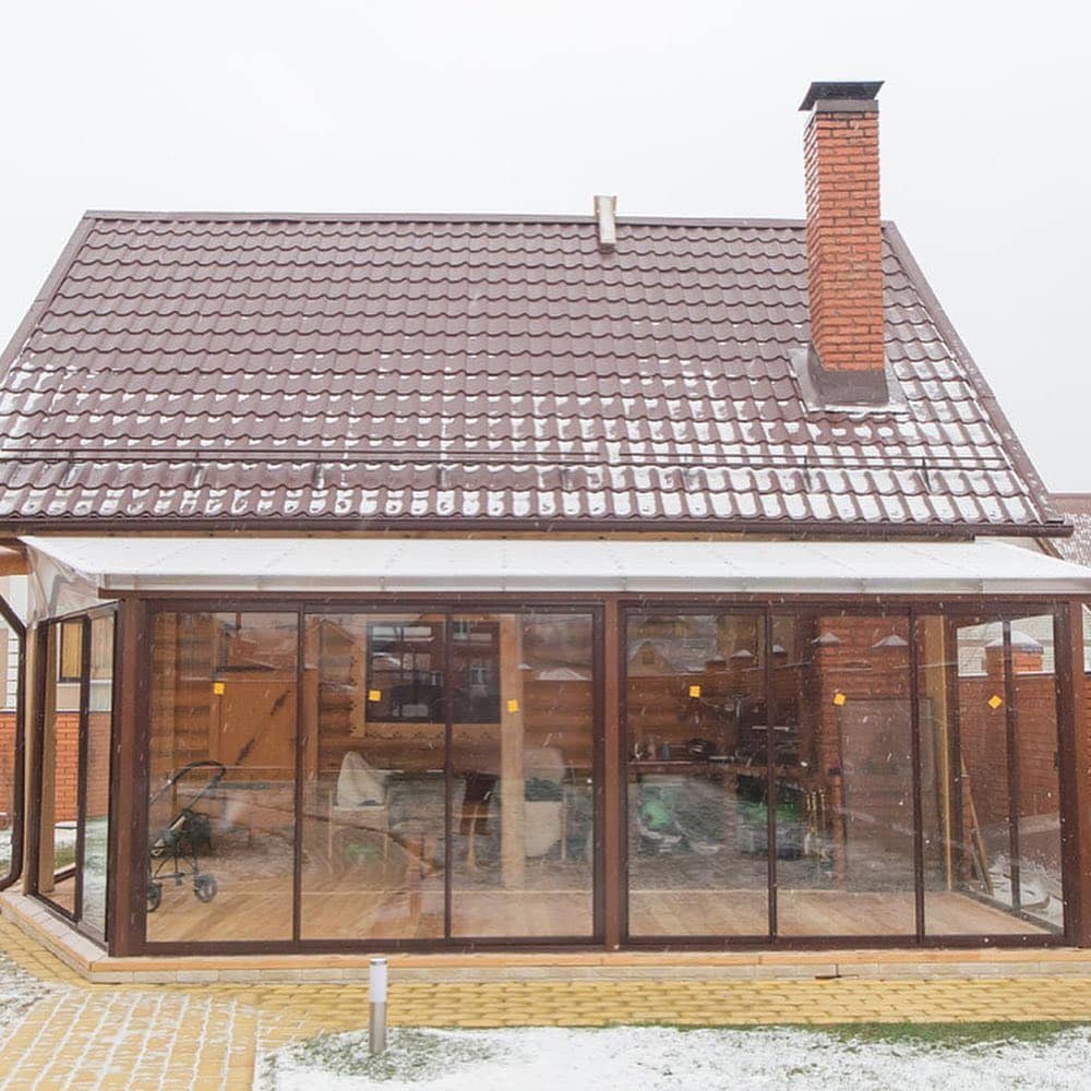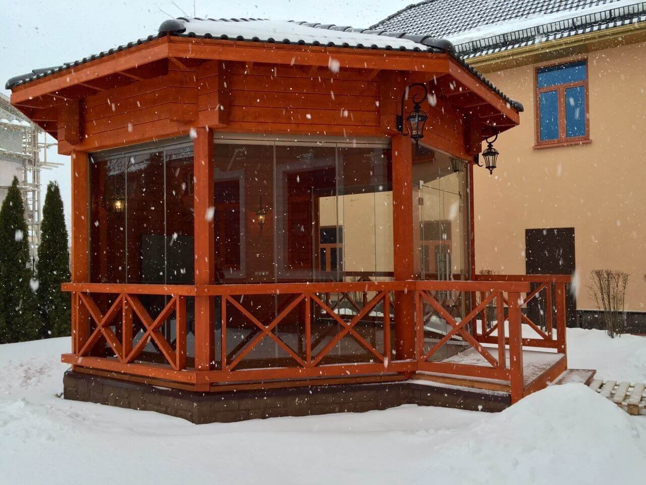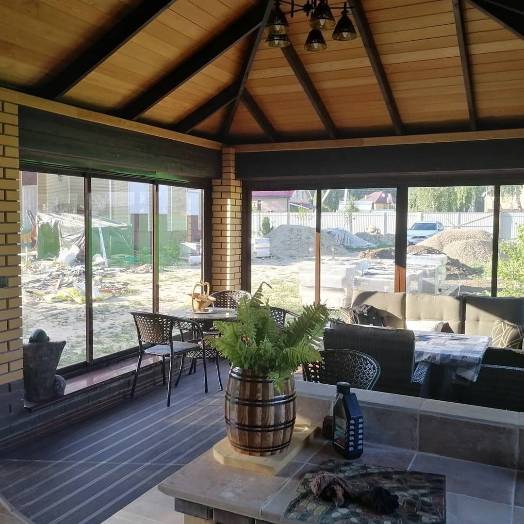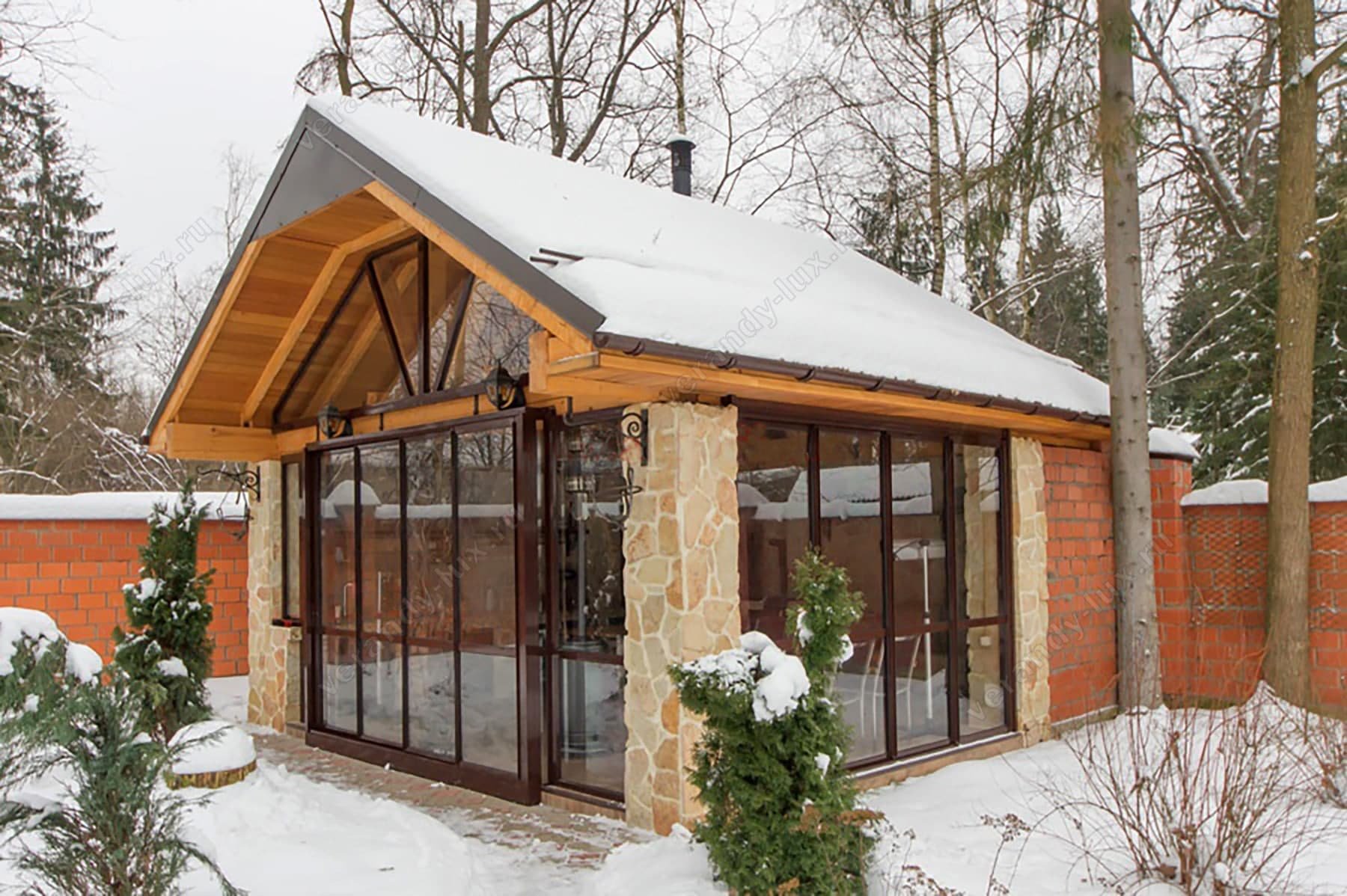 Крытая беседка застекленная с мангалом и барбекю 6х5