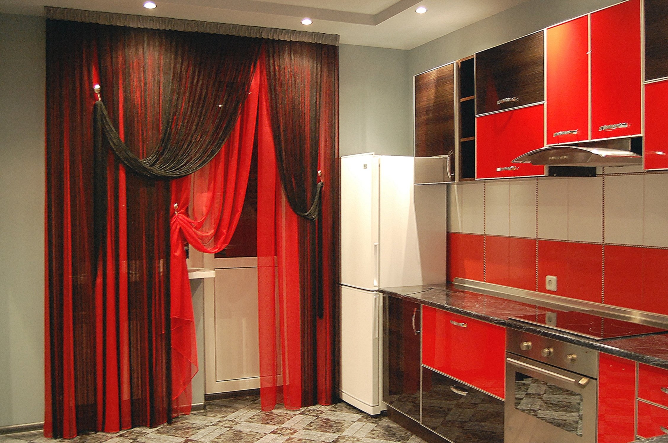 Красные шторы на кухню