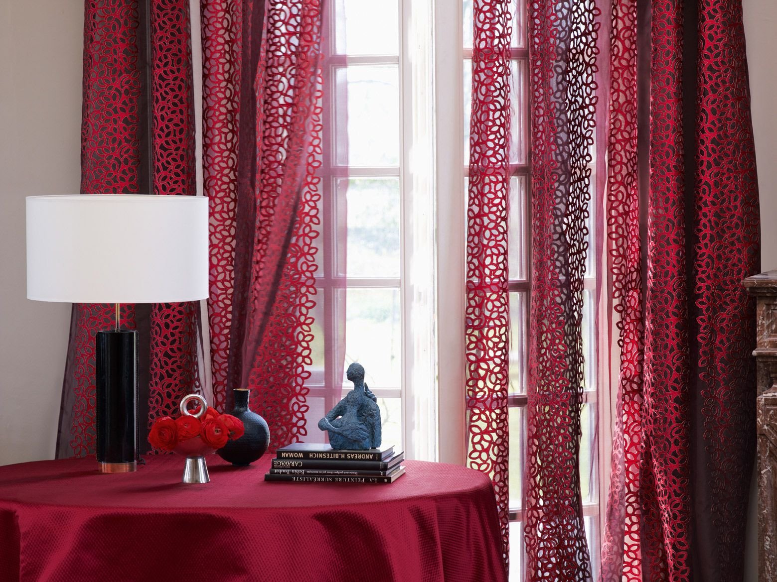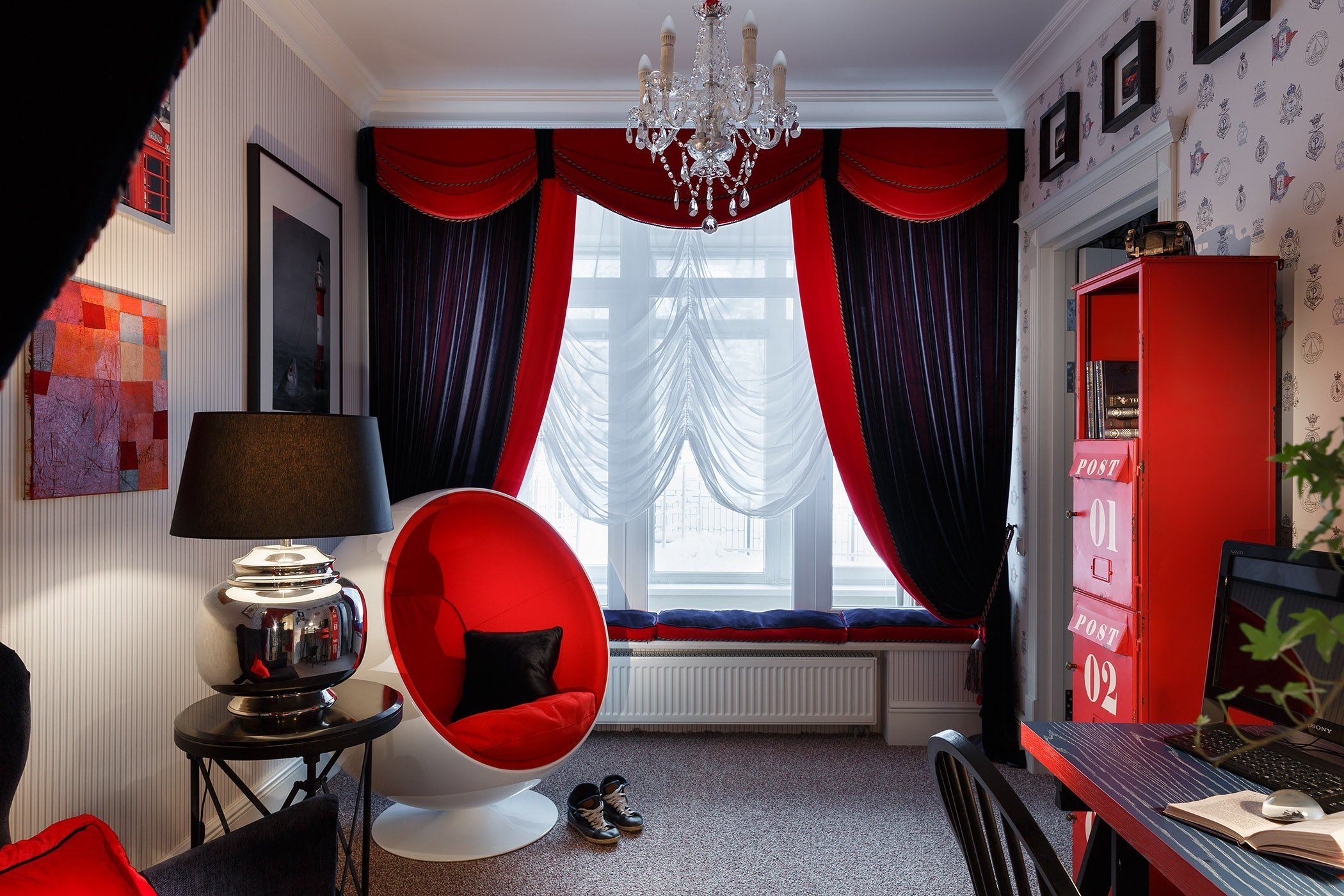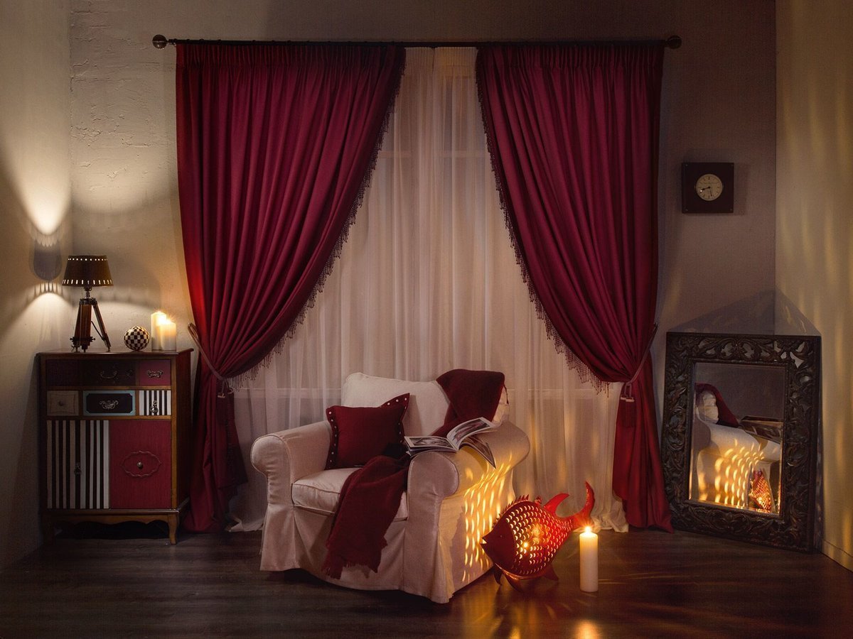 Красные шторы в интерьере