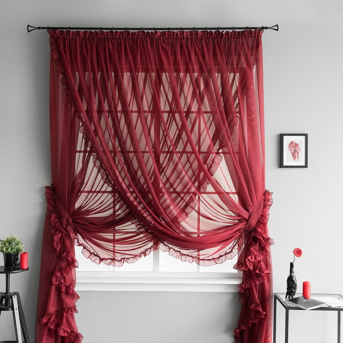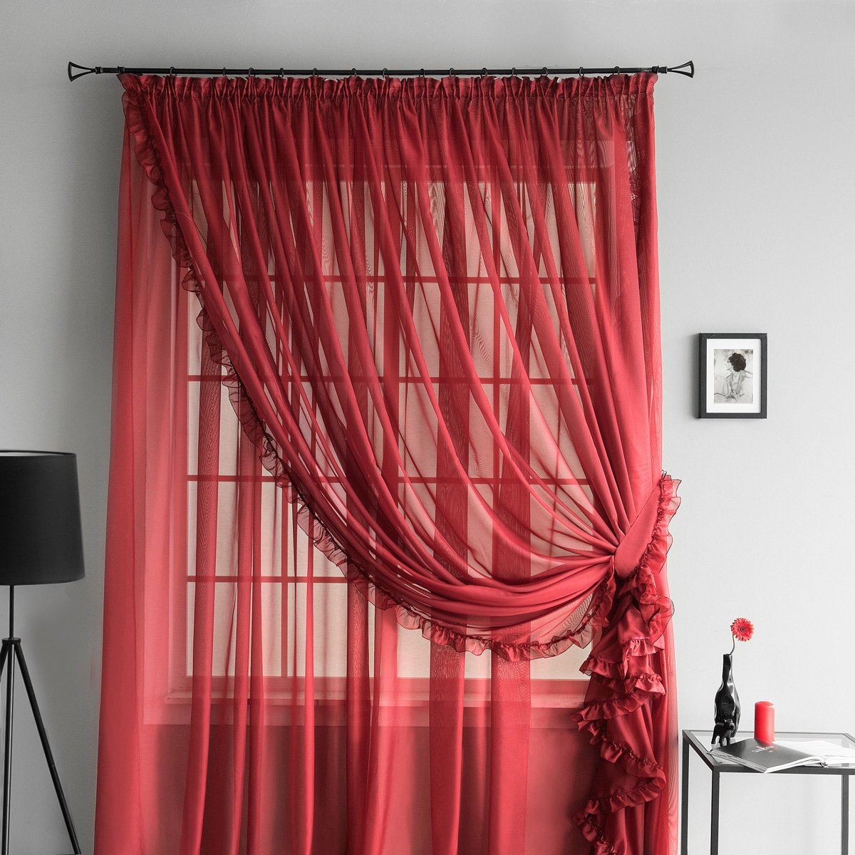 Бордовая тюль