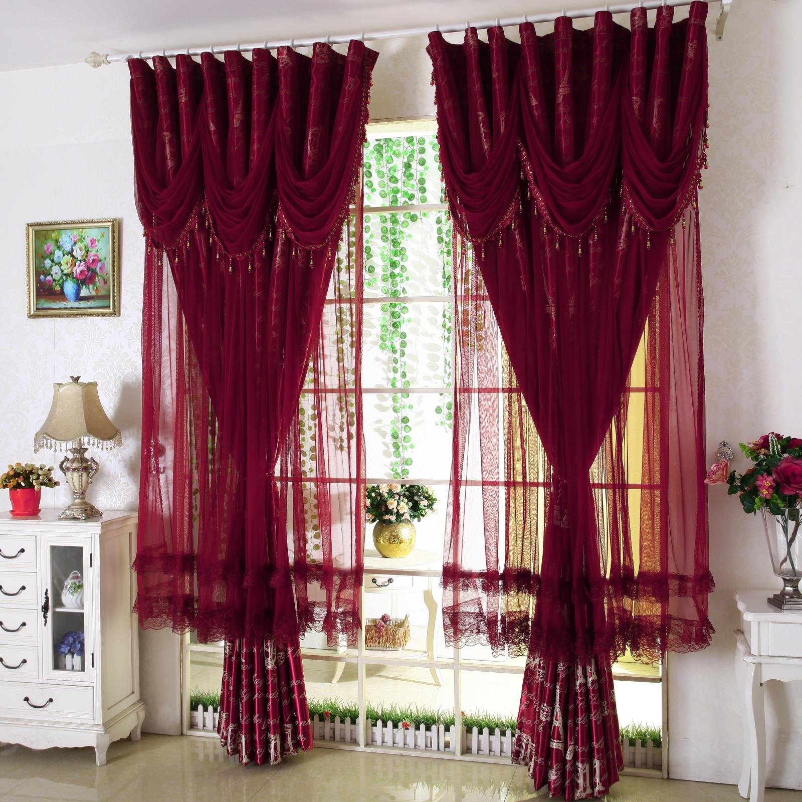 Вишневые шторы в интерьере