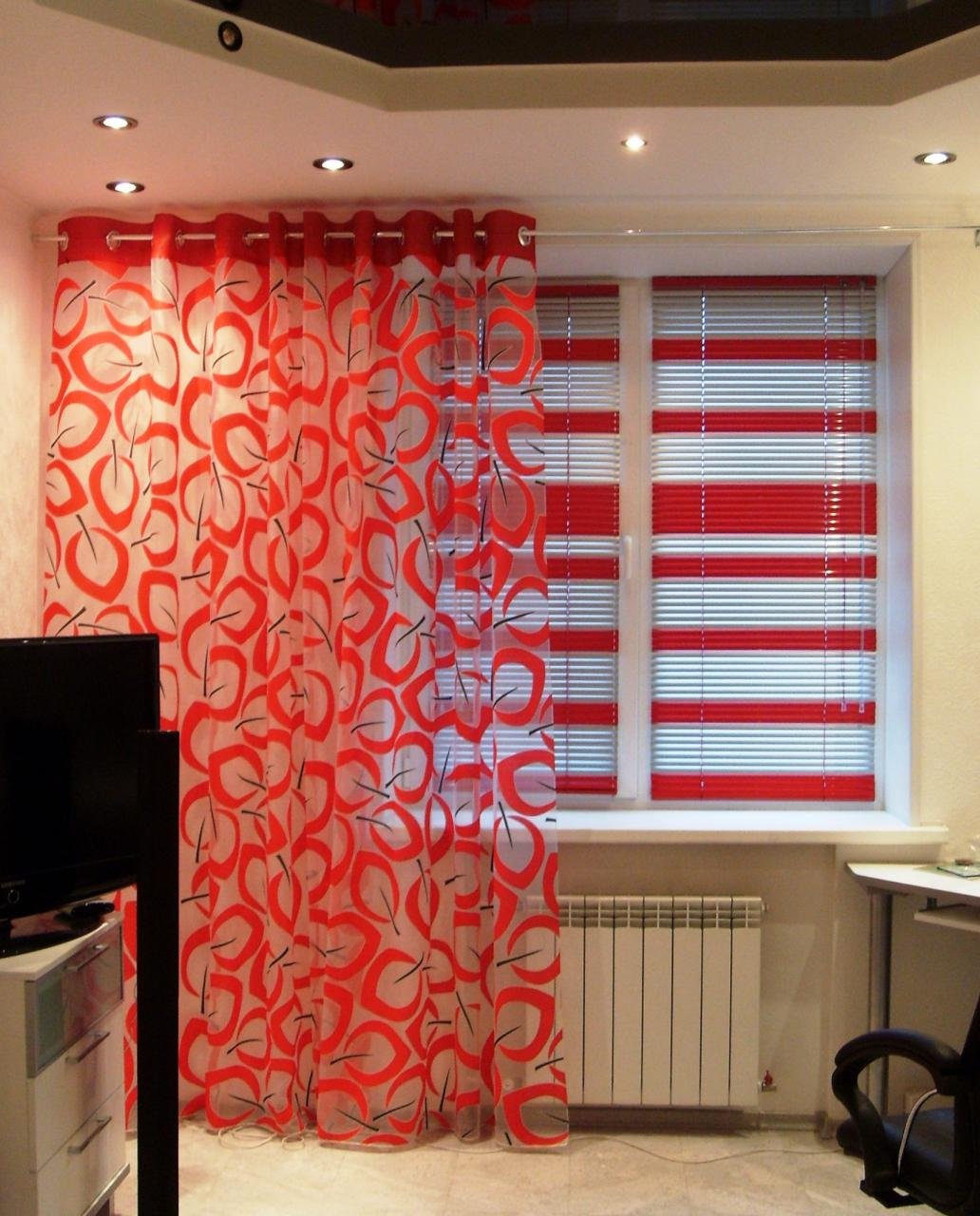 Шторы красные с белым