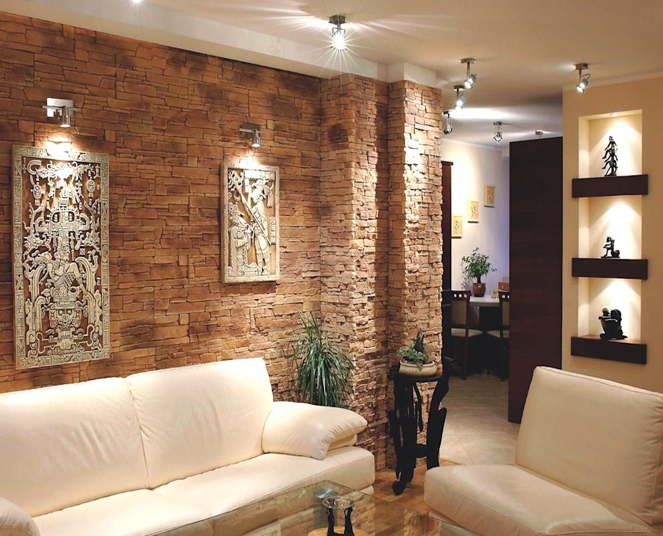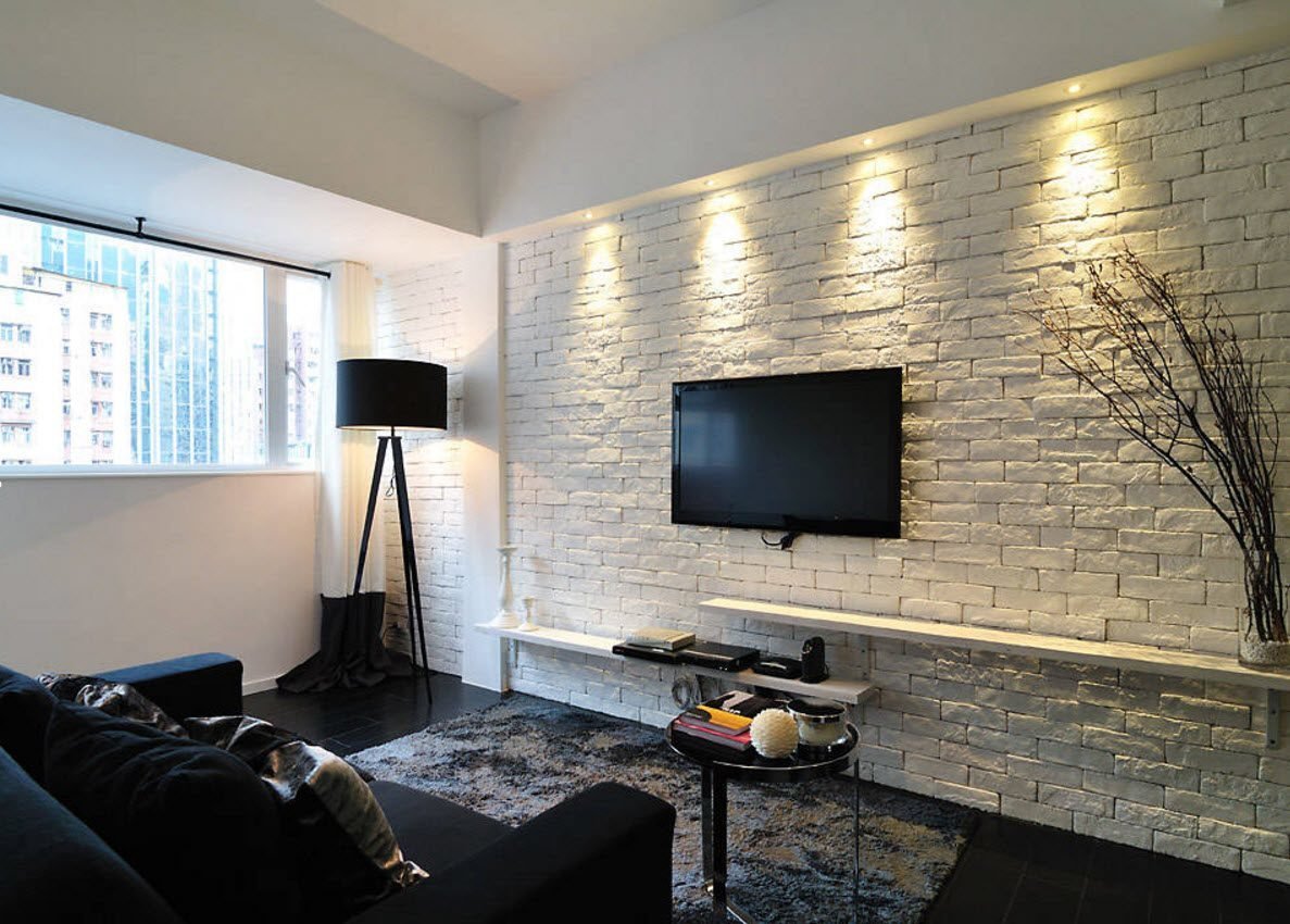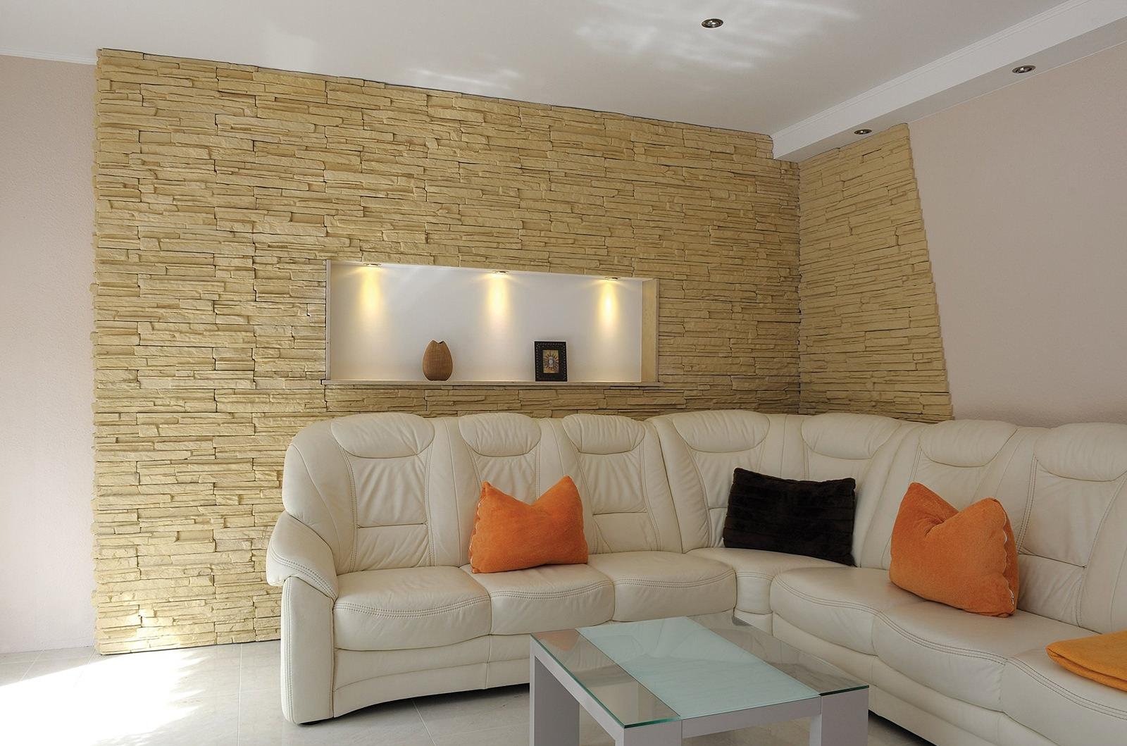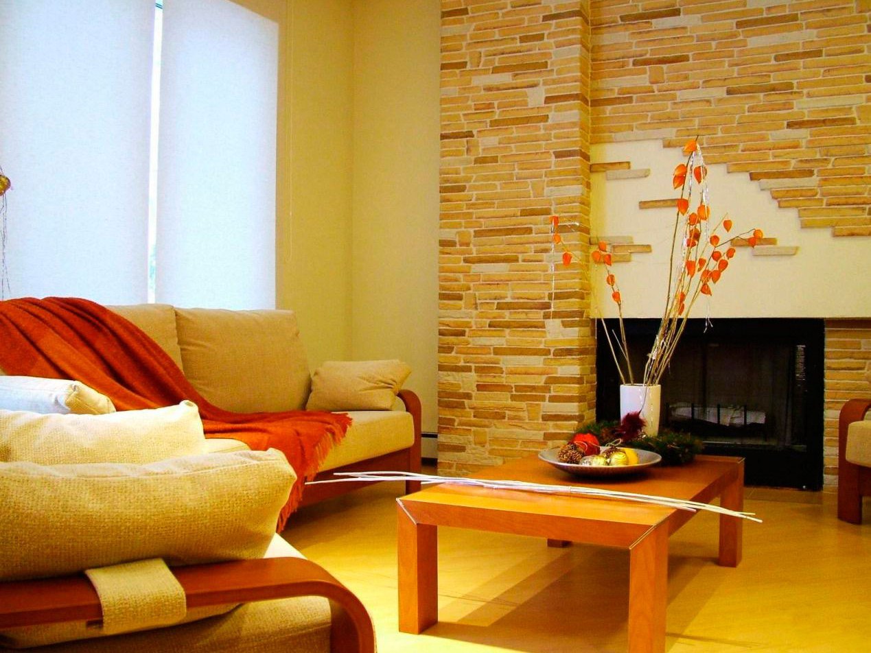 Декоративный камень в интерьере гостиной