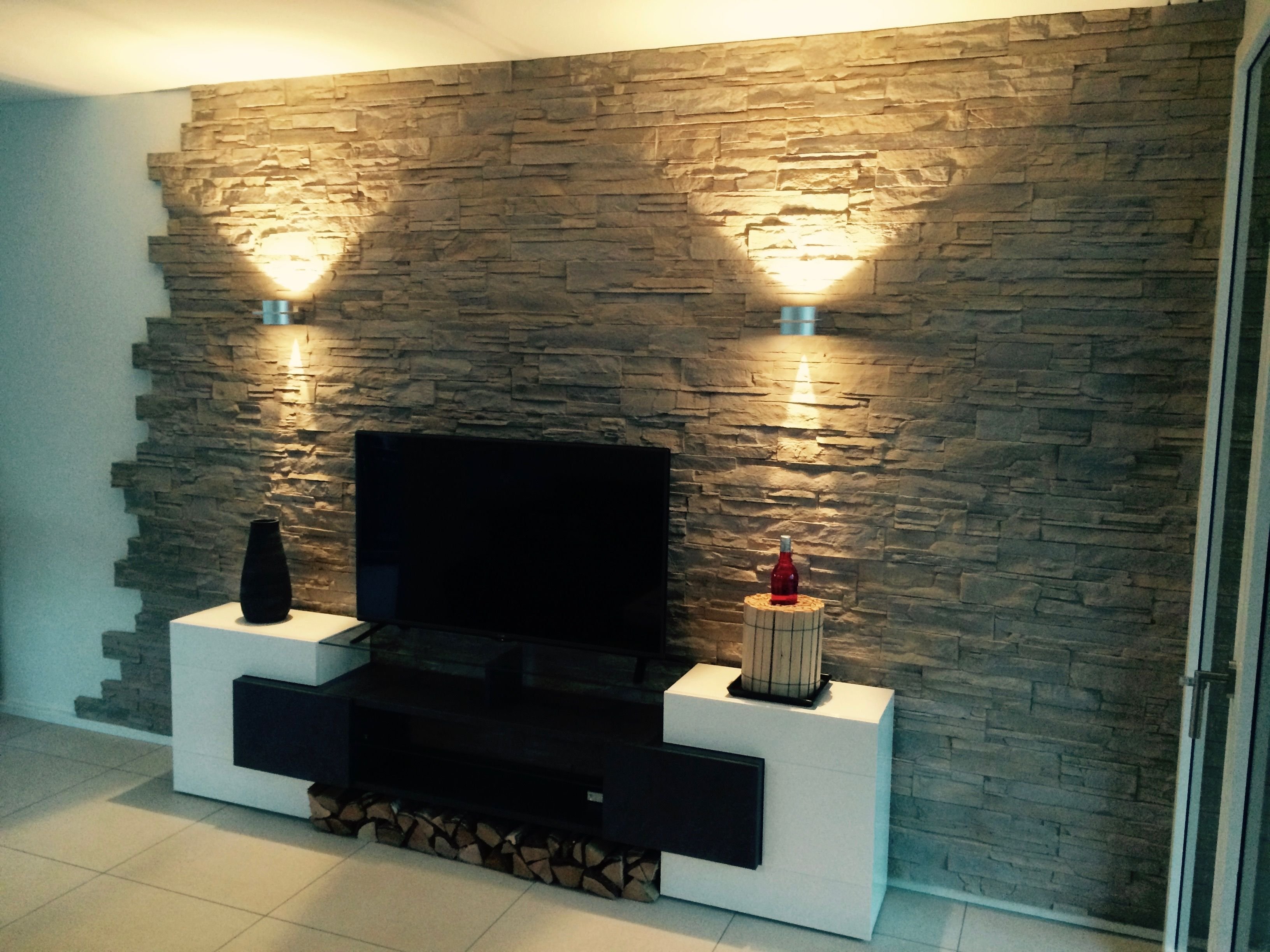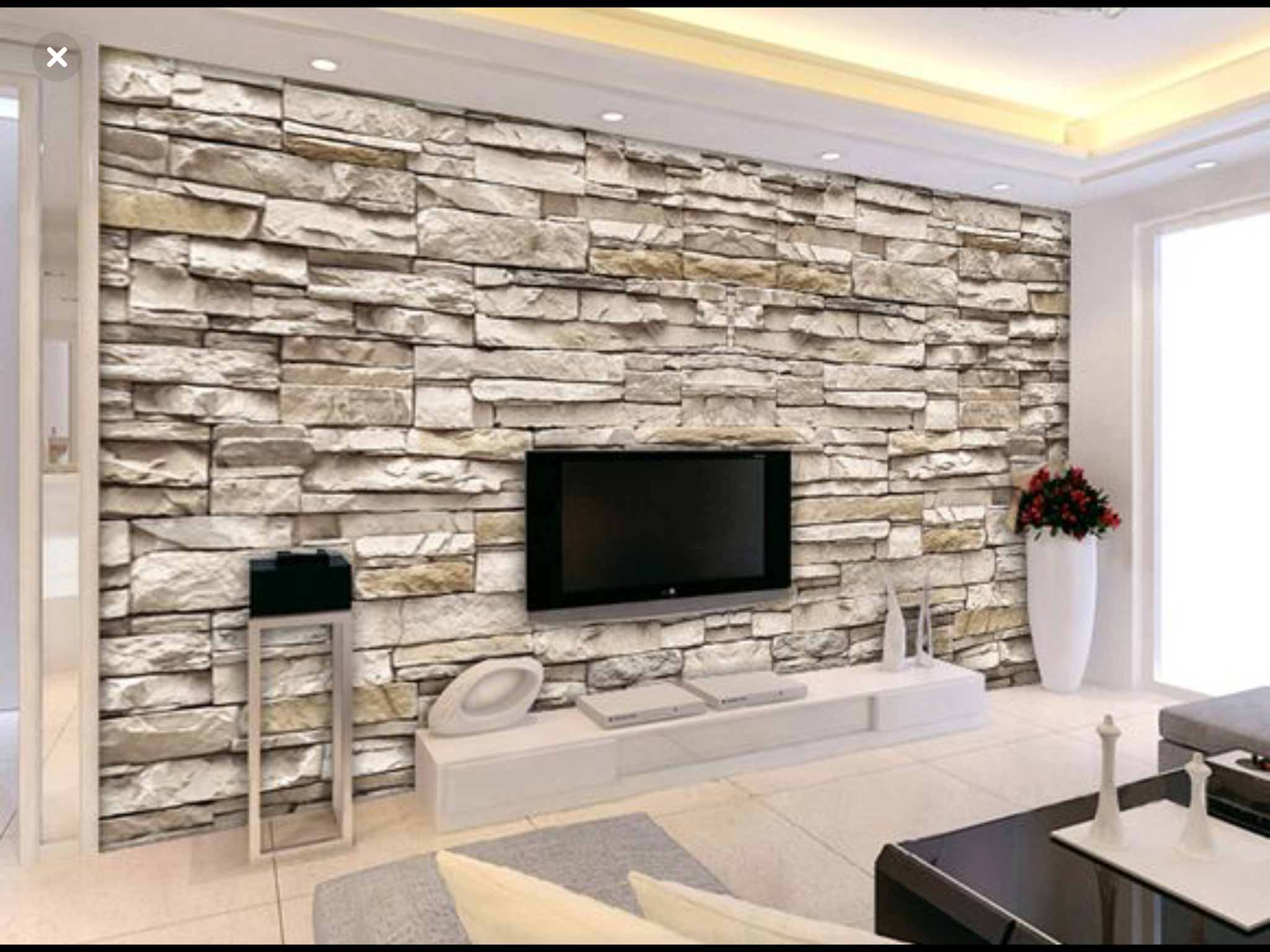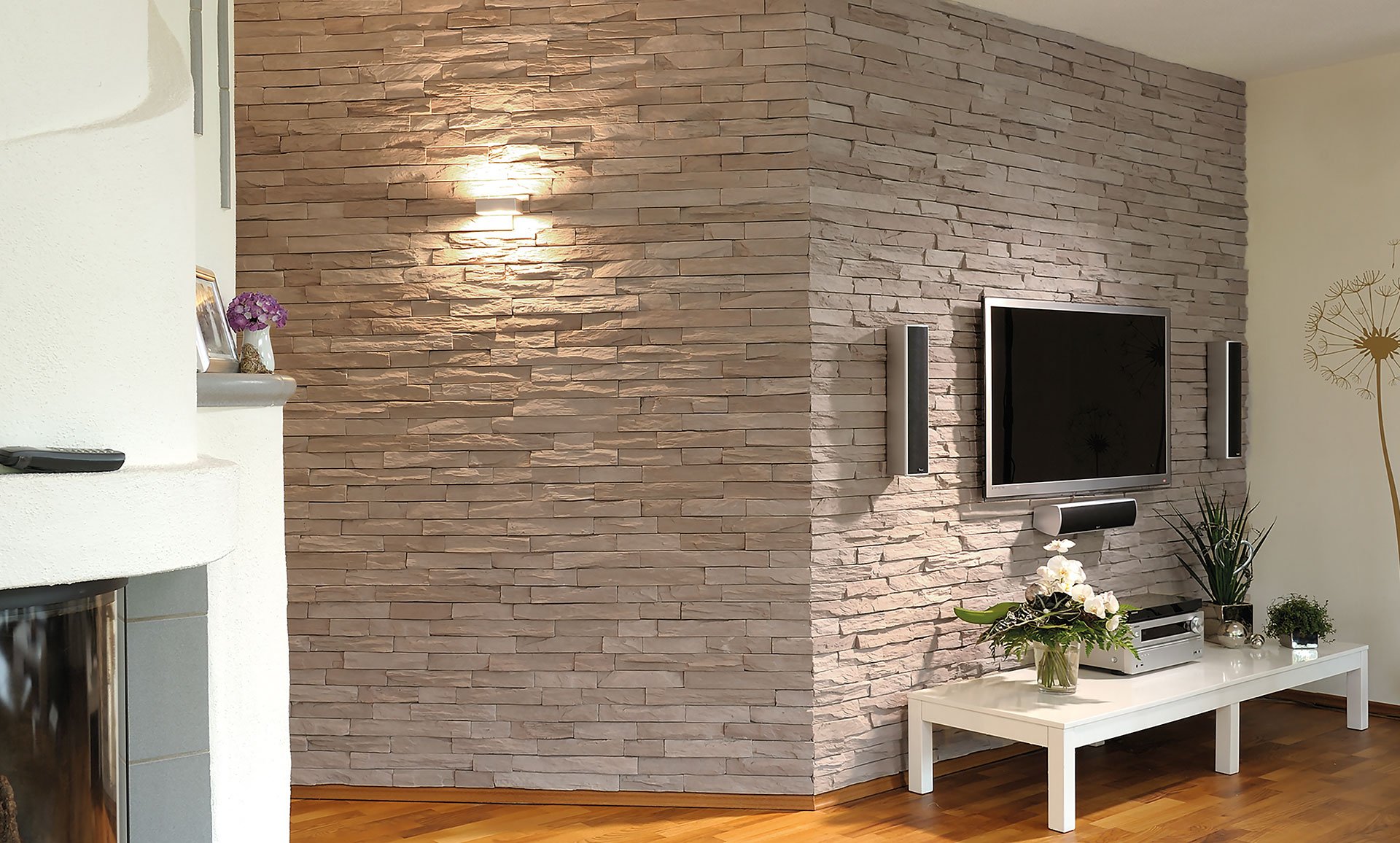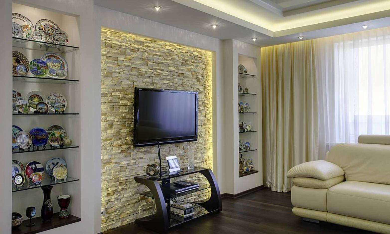Декоративный камень в интерьере гостиной