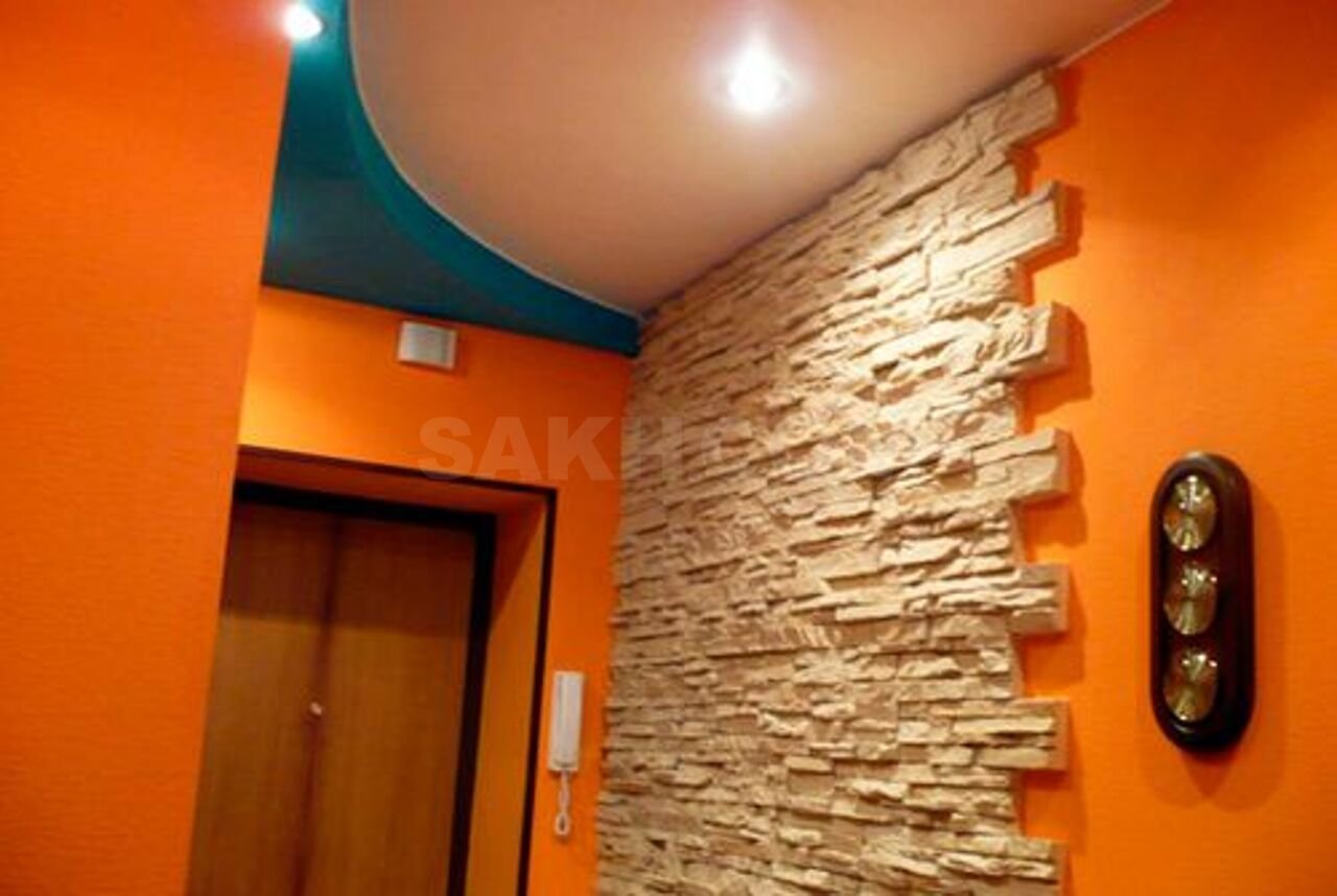 Отделка прихожей декоративным камнем и обоями