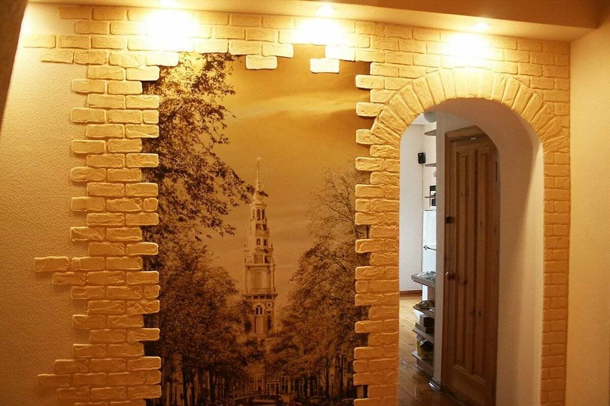 Отделка арки кирпичиками
