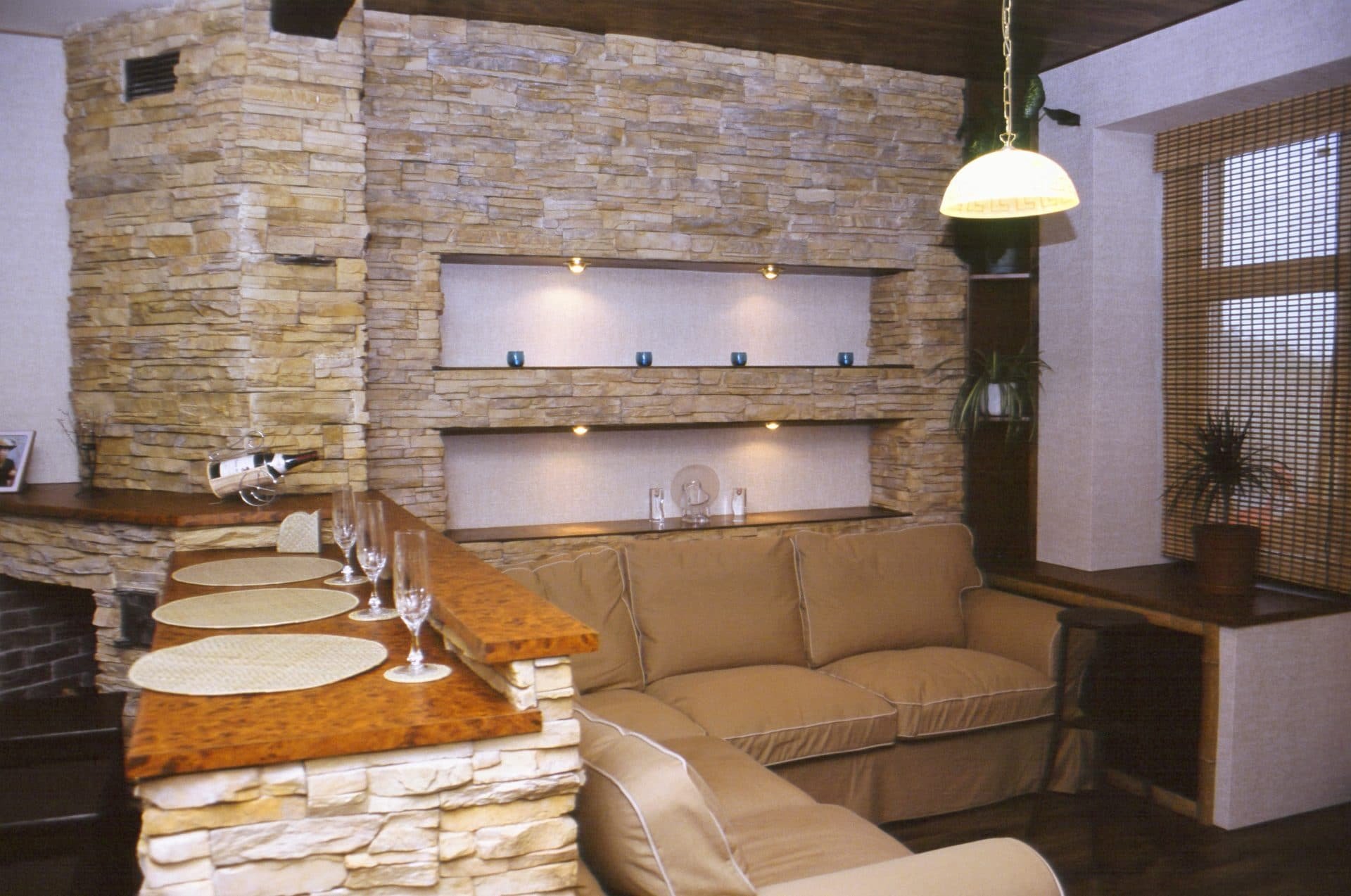 Гостиная с искусственным камнем