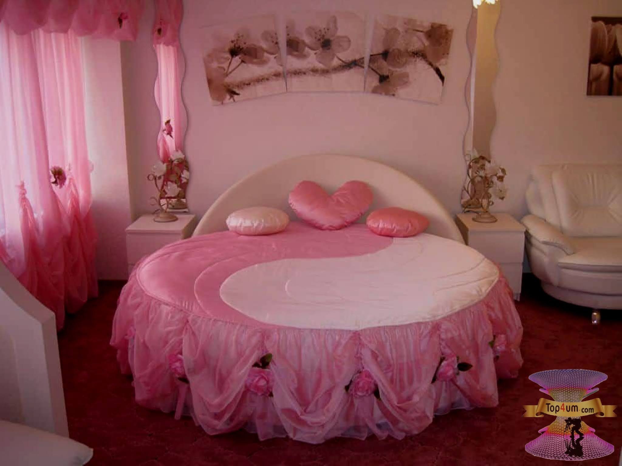 Круглая розовая кровать