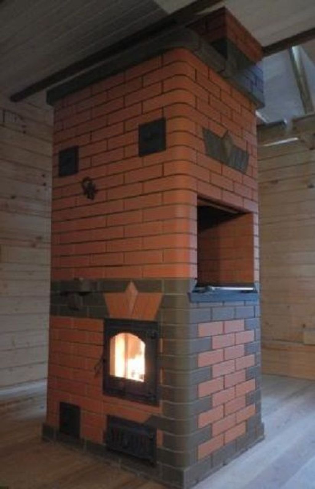 Кирпичная печь шведка с камином