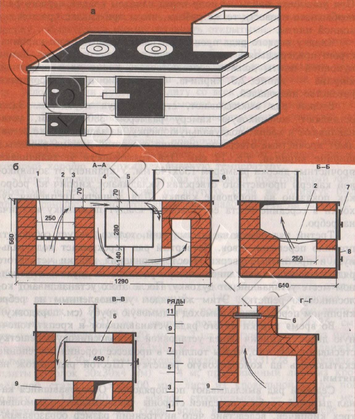 Печь отопительно-варочная кирпичная порядовка