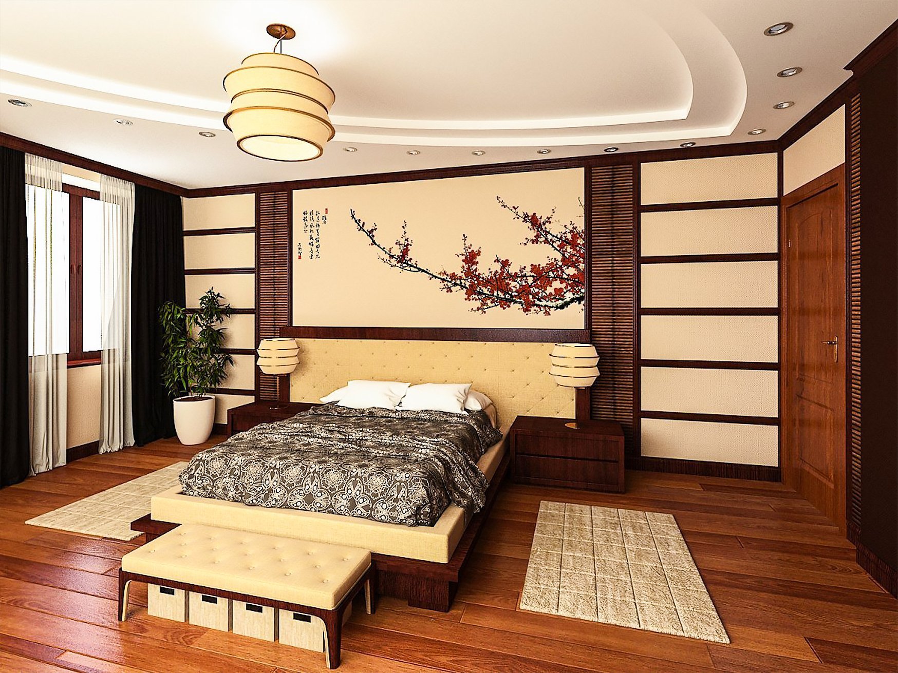 Японский стиль в интерьере спальни