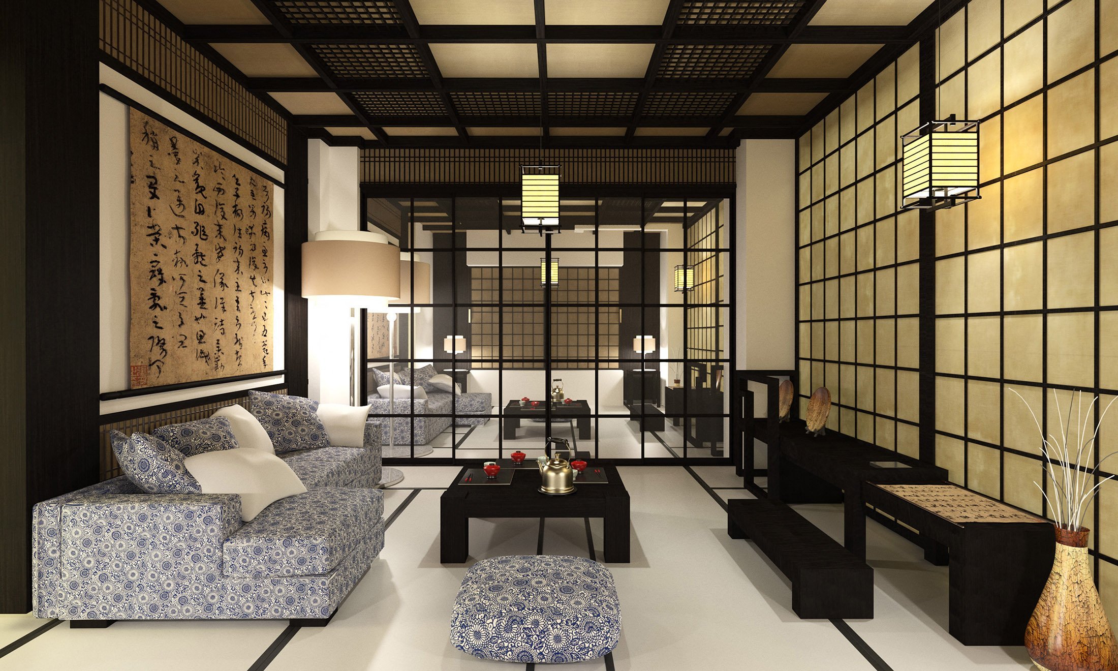 Диваны интерьера в японском стиле