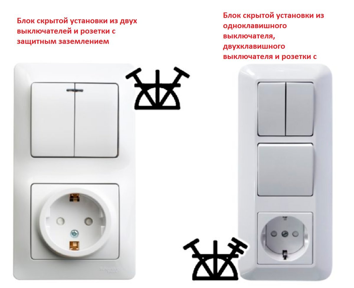 Блок розетка одноклавишный выключатель двухклавишный выключатель