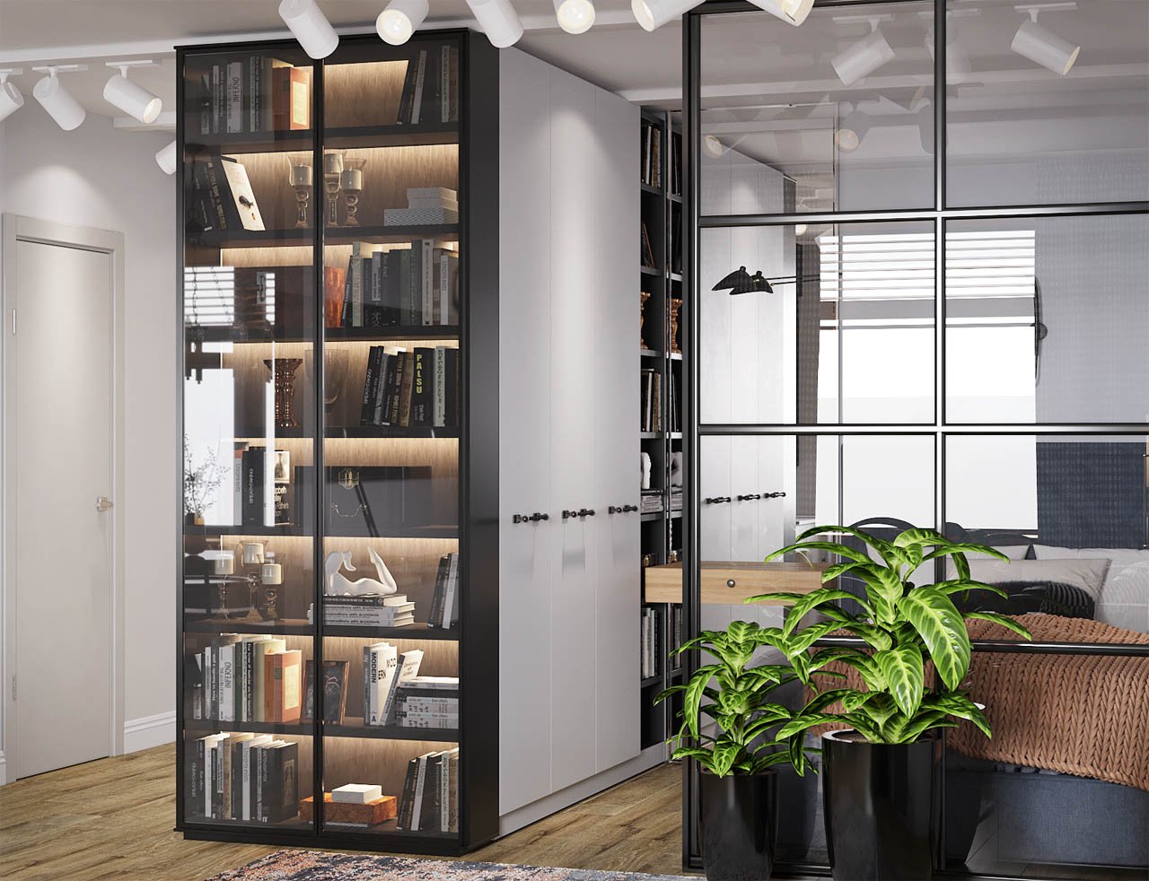 Зонирование студии шкафом