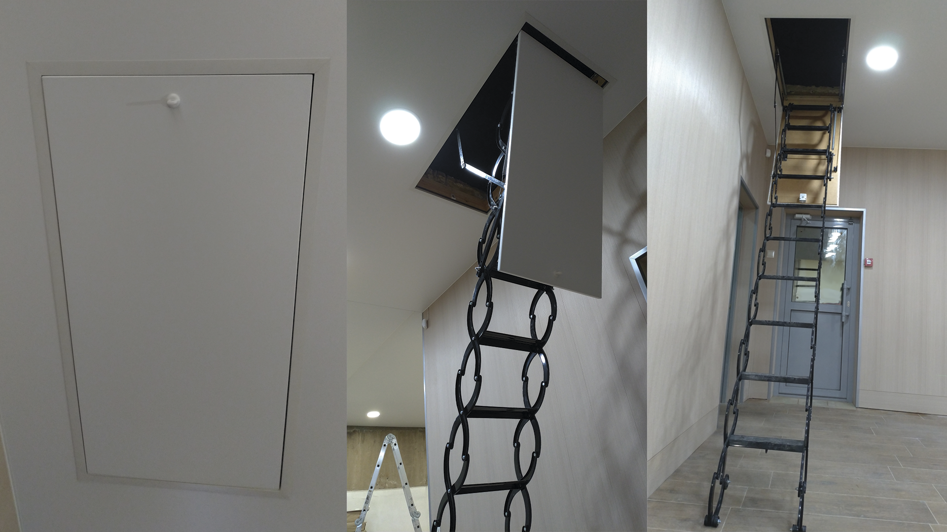 Чердачная лестница в натяжном потолке
