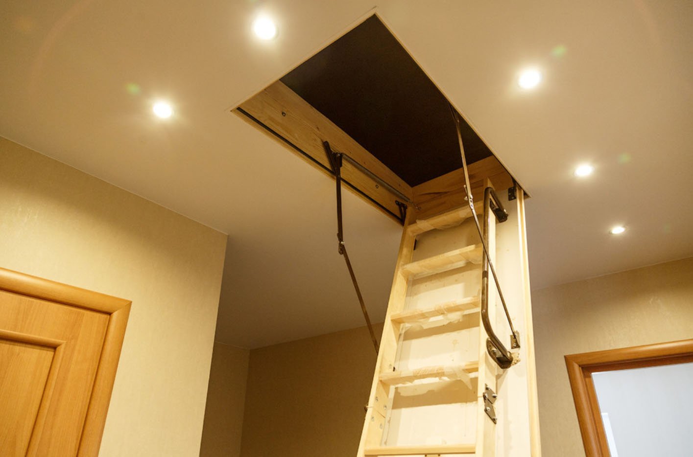 Натяжной потолок с чердачной лестницей фото