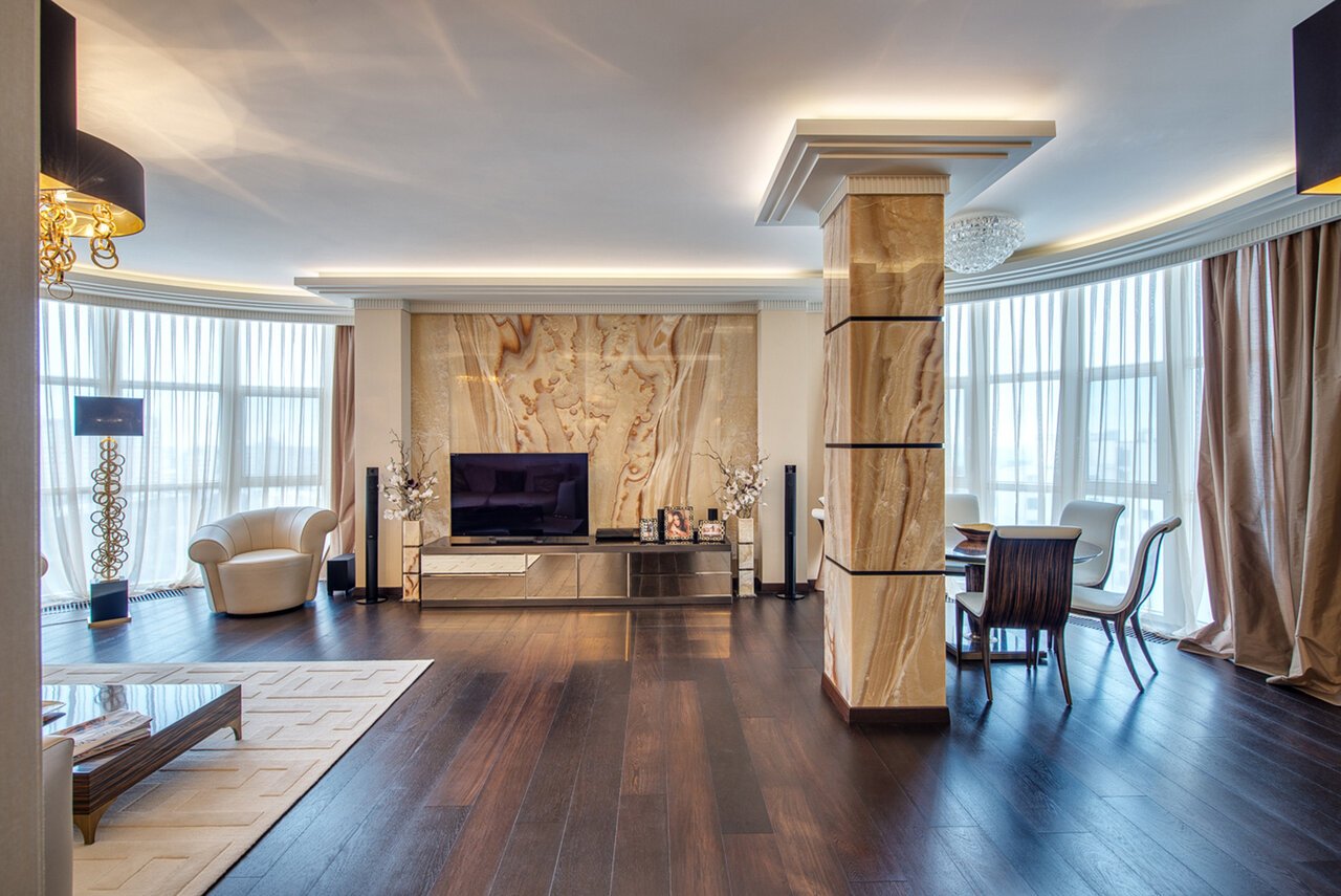 Колонна в интерьере гостиной современный стиль