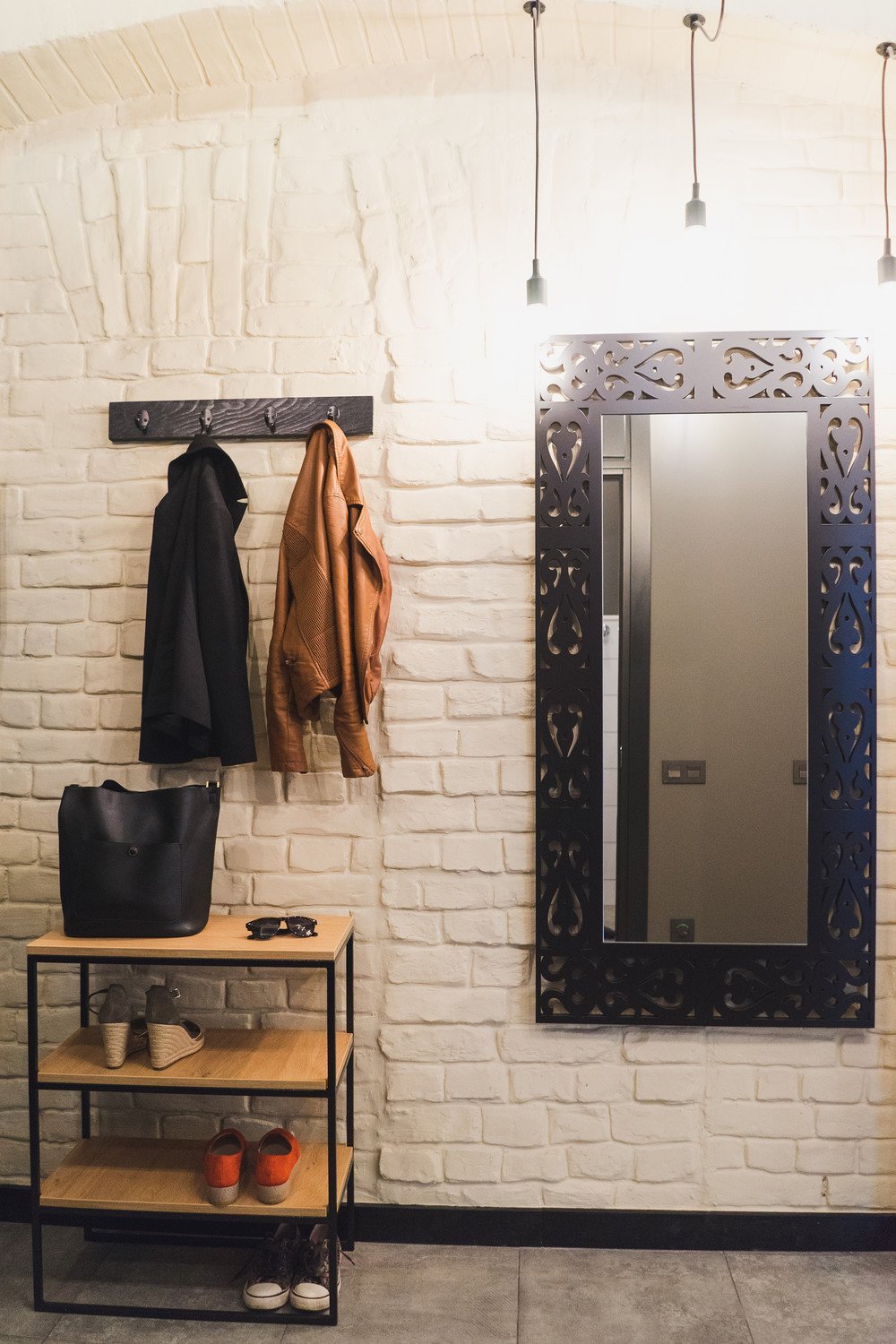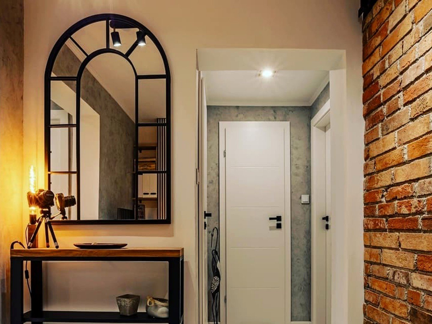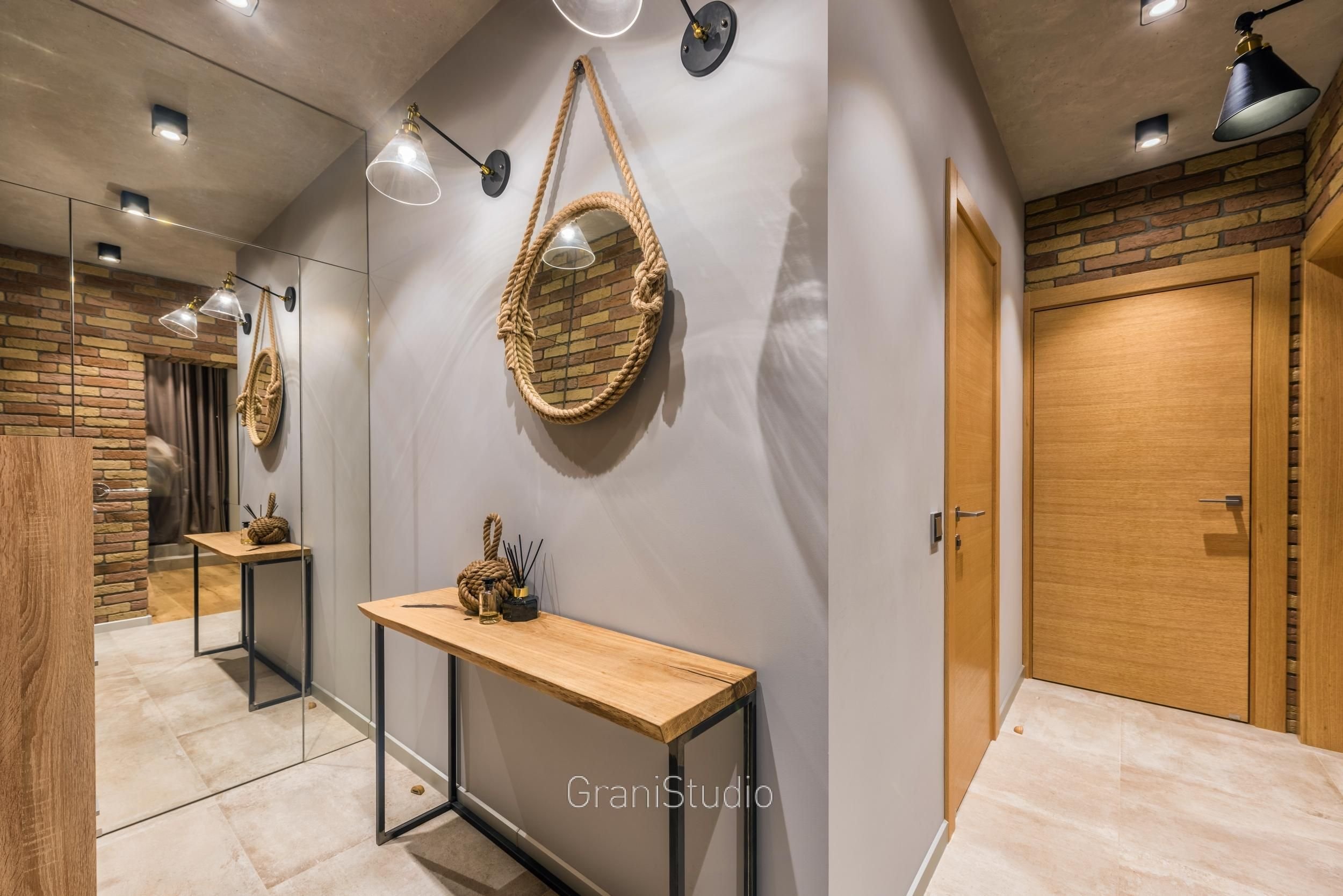 Хожаяв стиле лофт с зеркалом