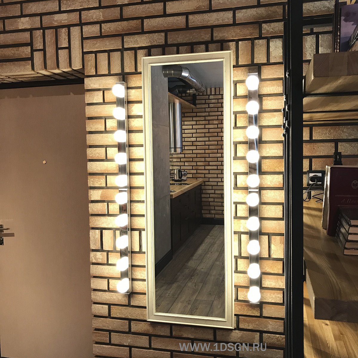 Зеркало с лампочками в интерьере