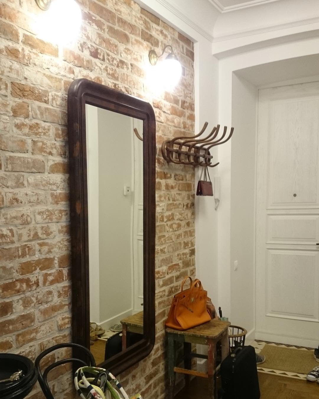 Кирпичная стена в прихожей