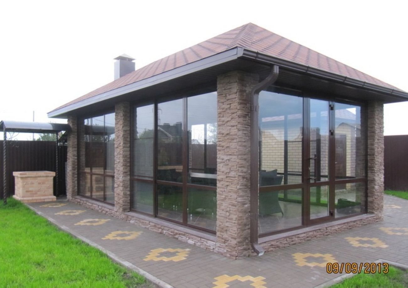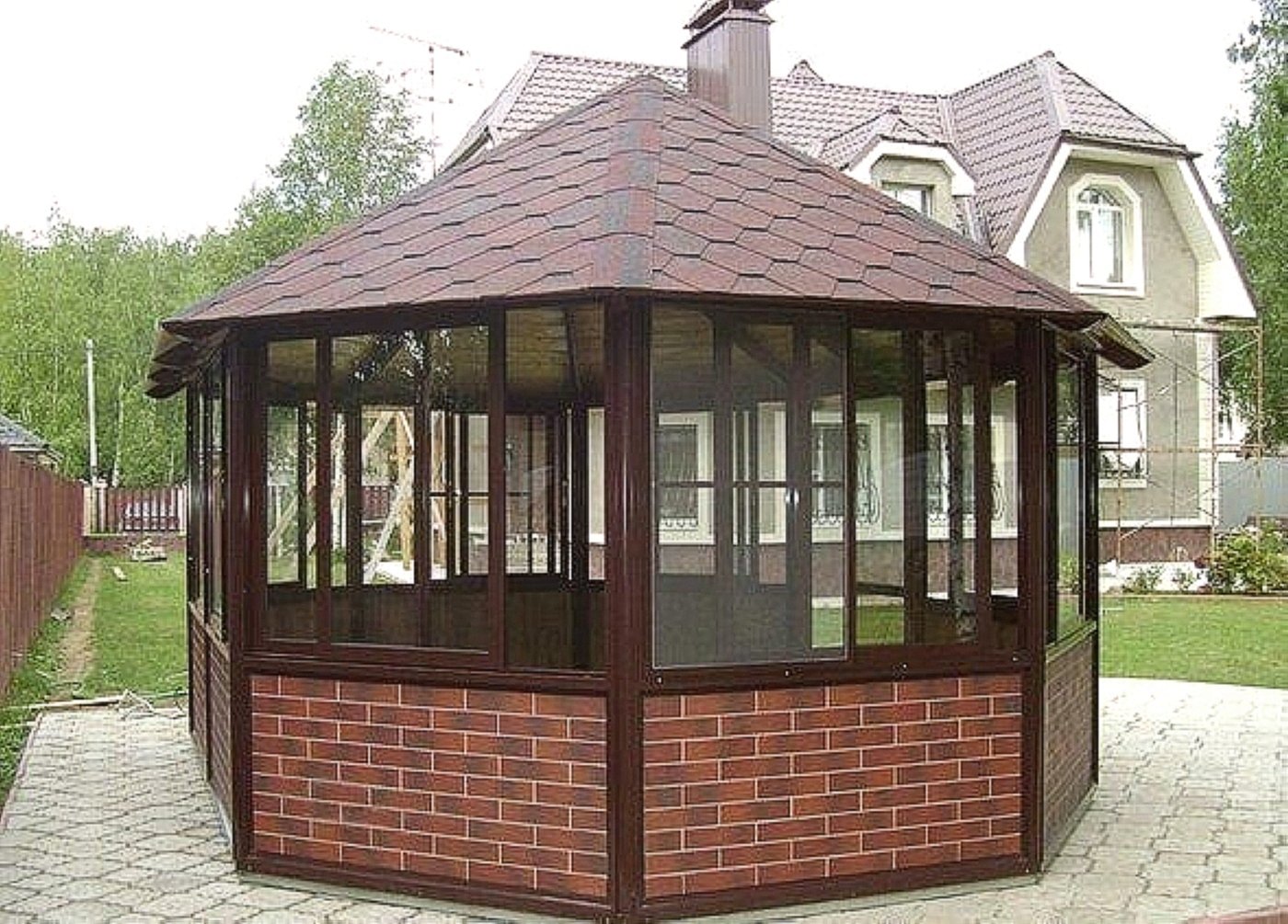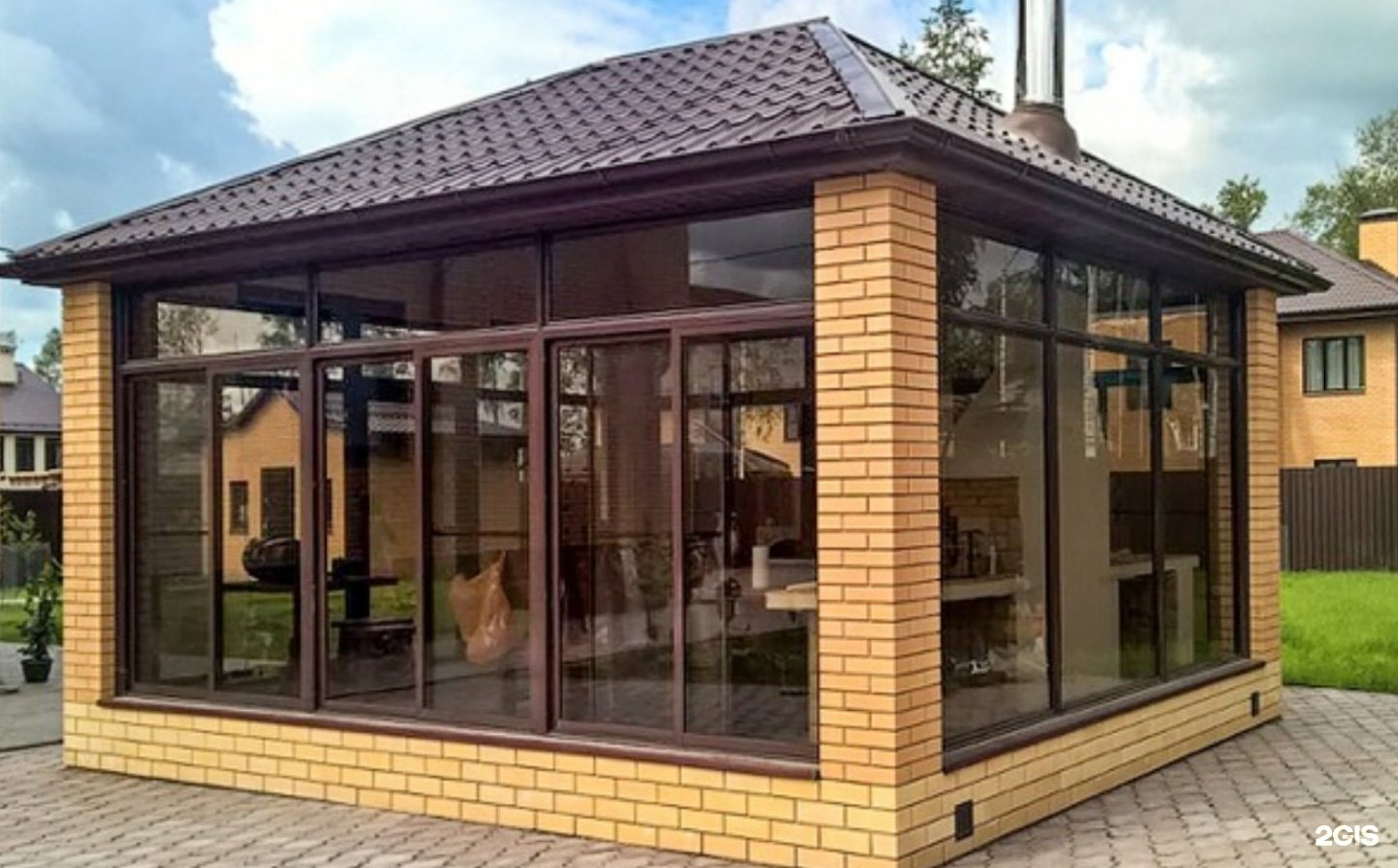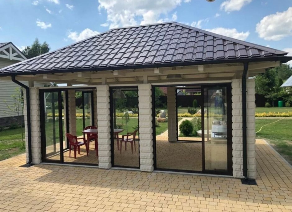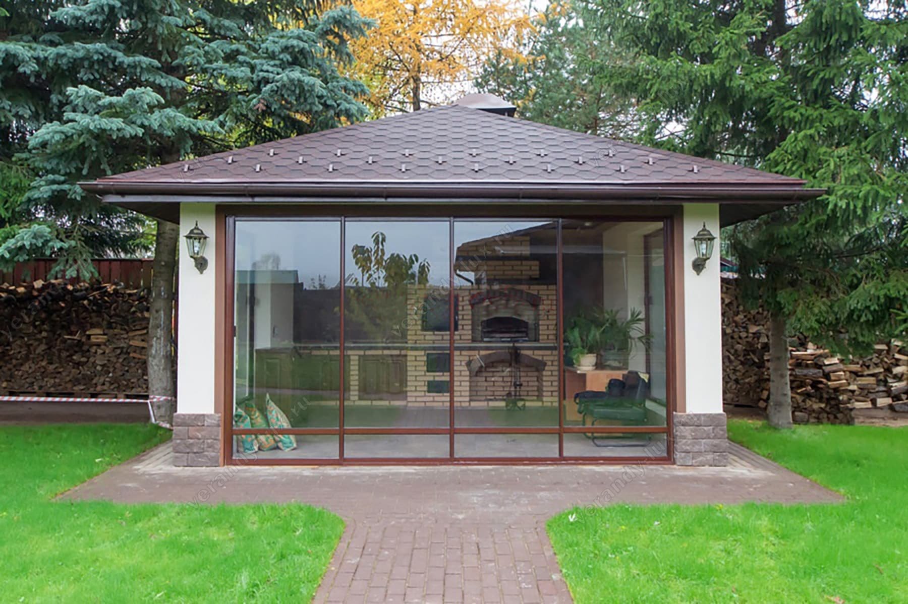 Беседка из кирпича застекленная АЛЮСТРОЙ