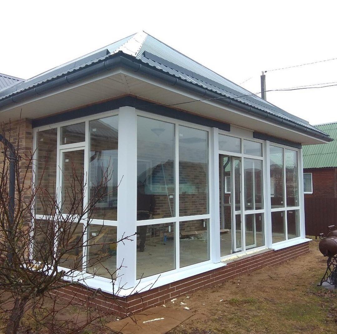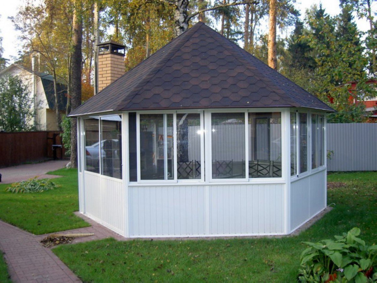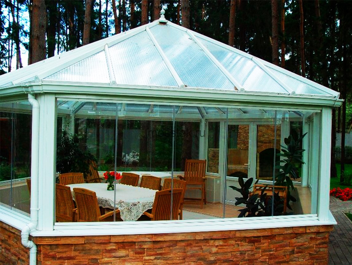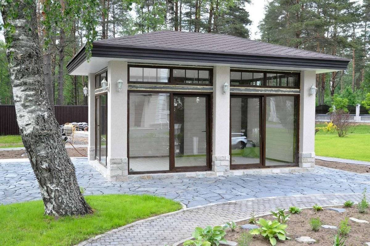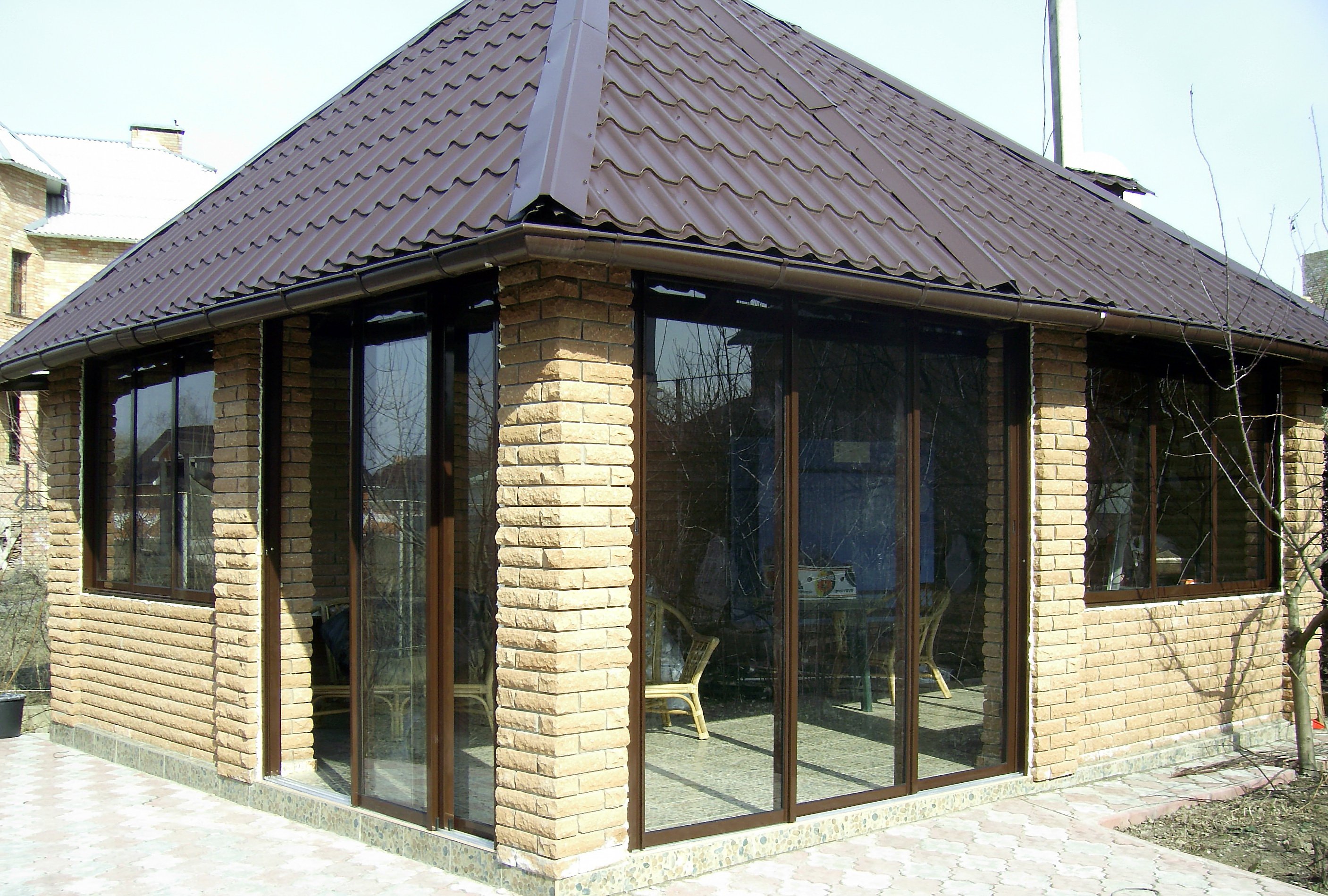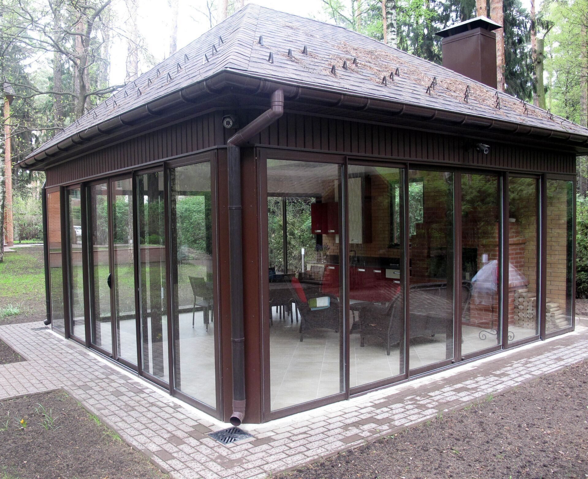 Беседка из кирпича застекленная АЛЮСТРОЙ