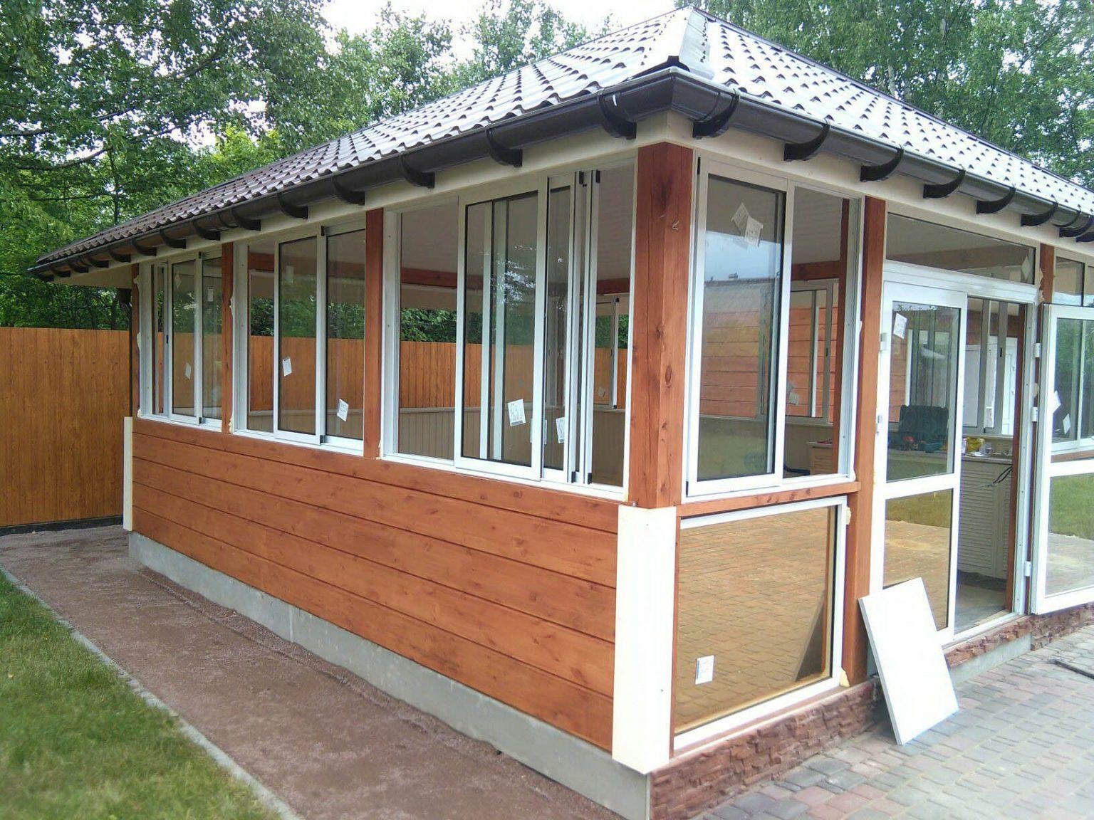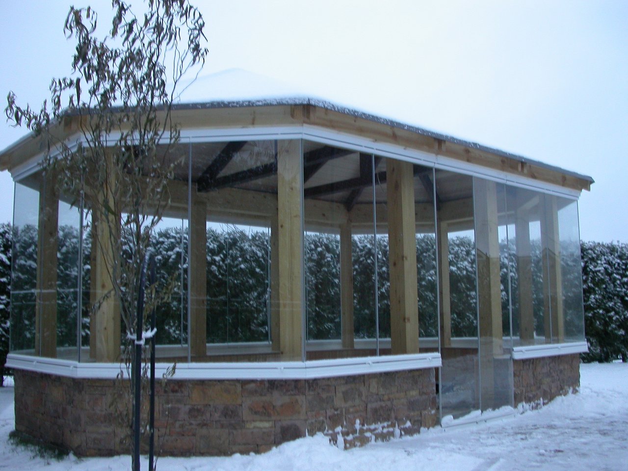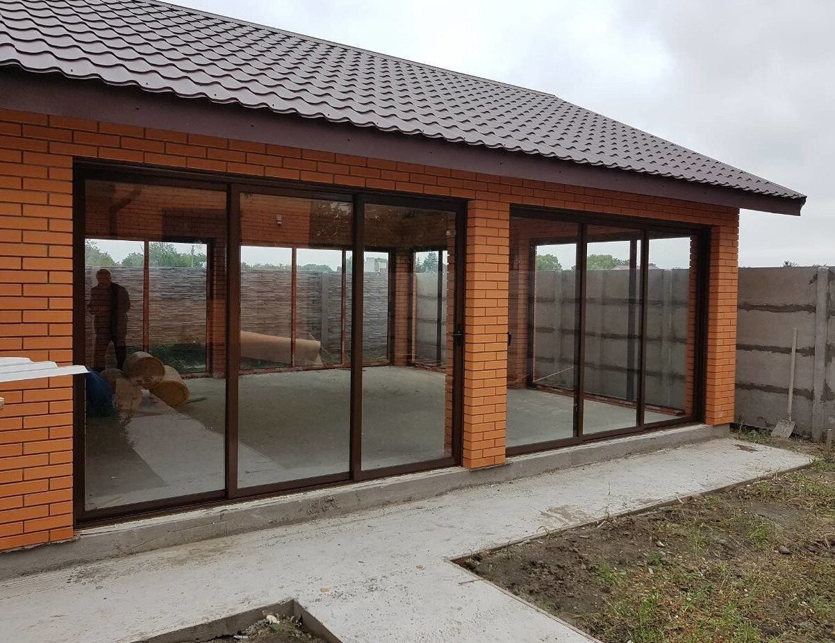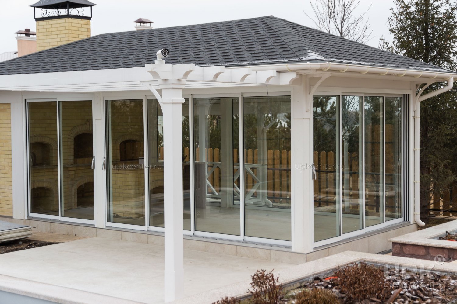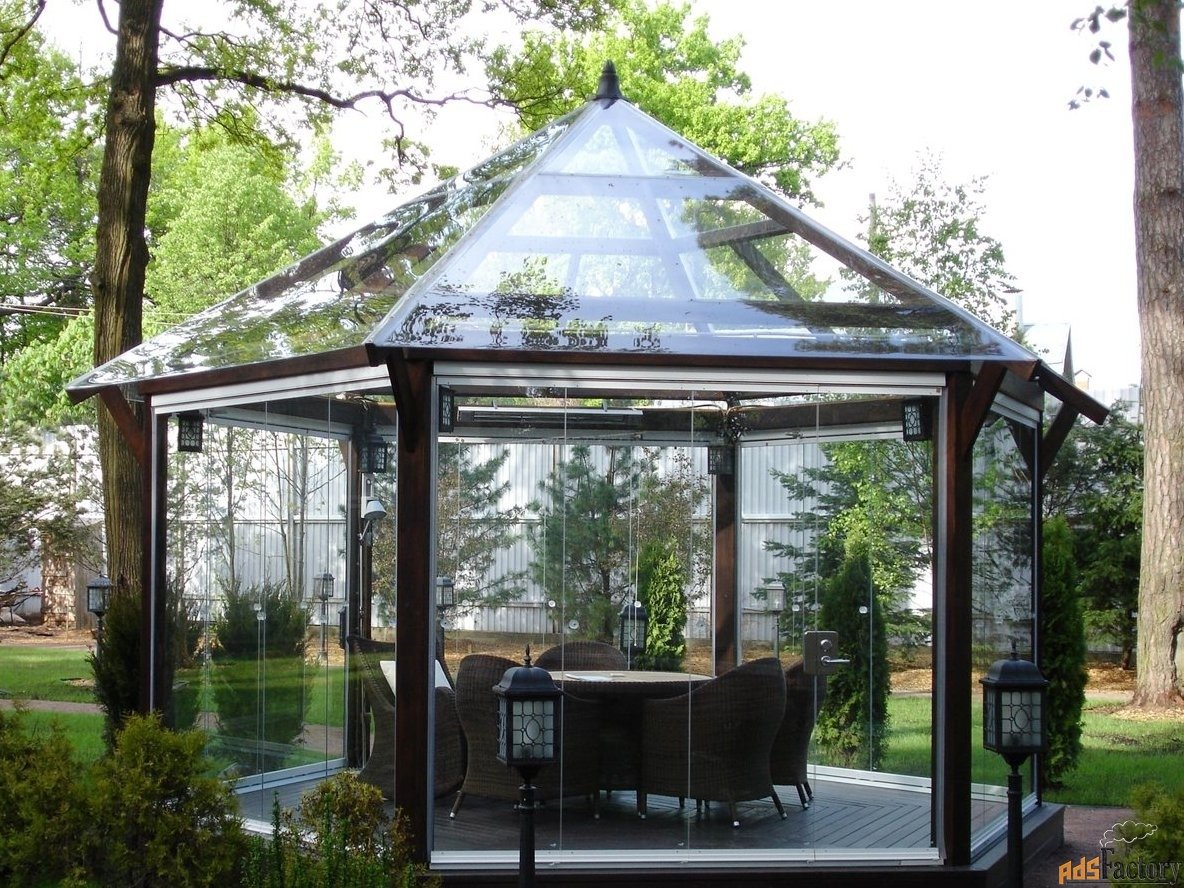 Беседка из кирпича застекленная АЛЮСТРОЙ