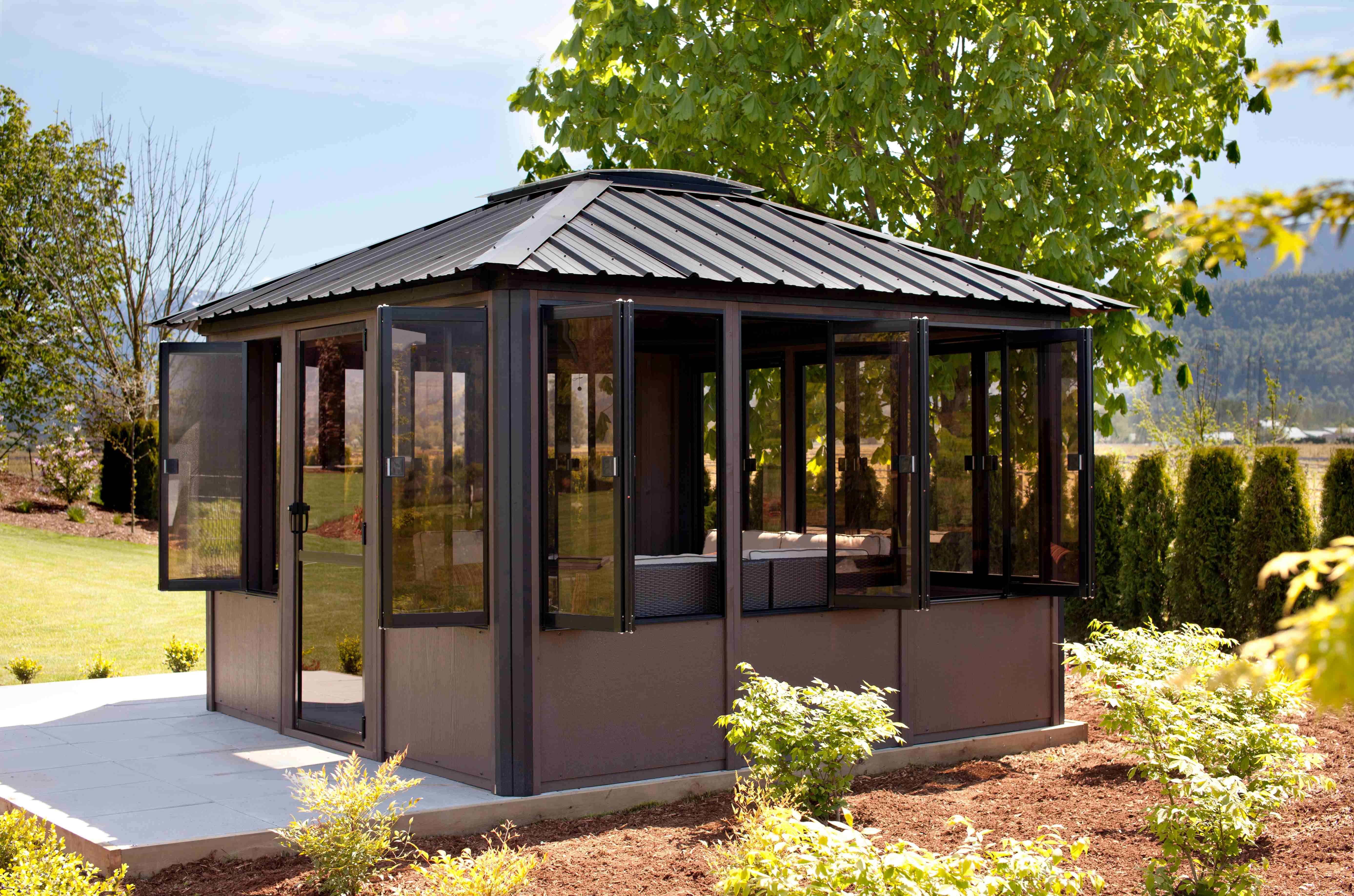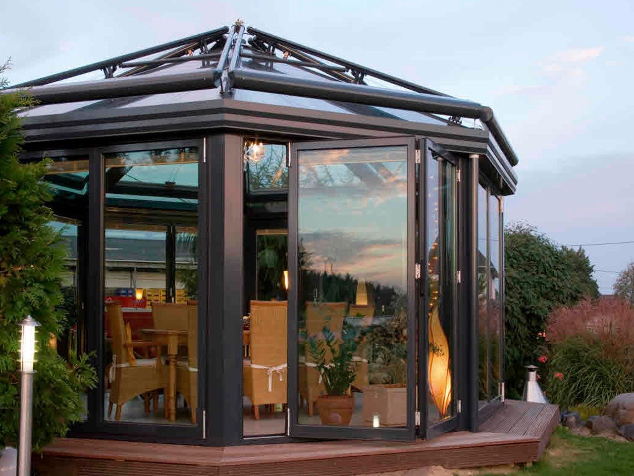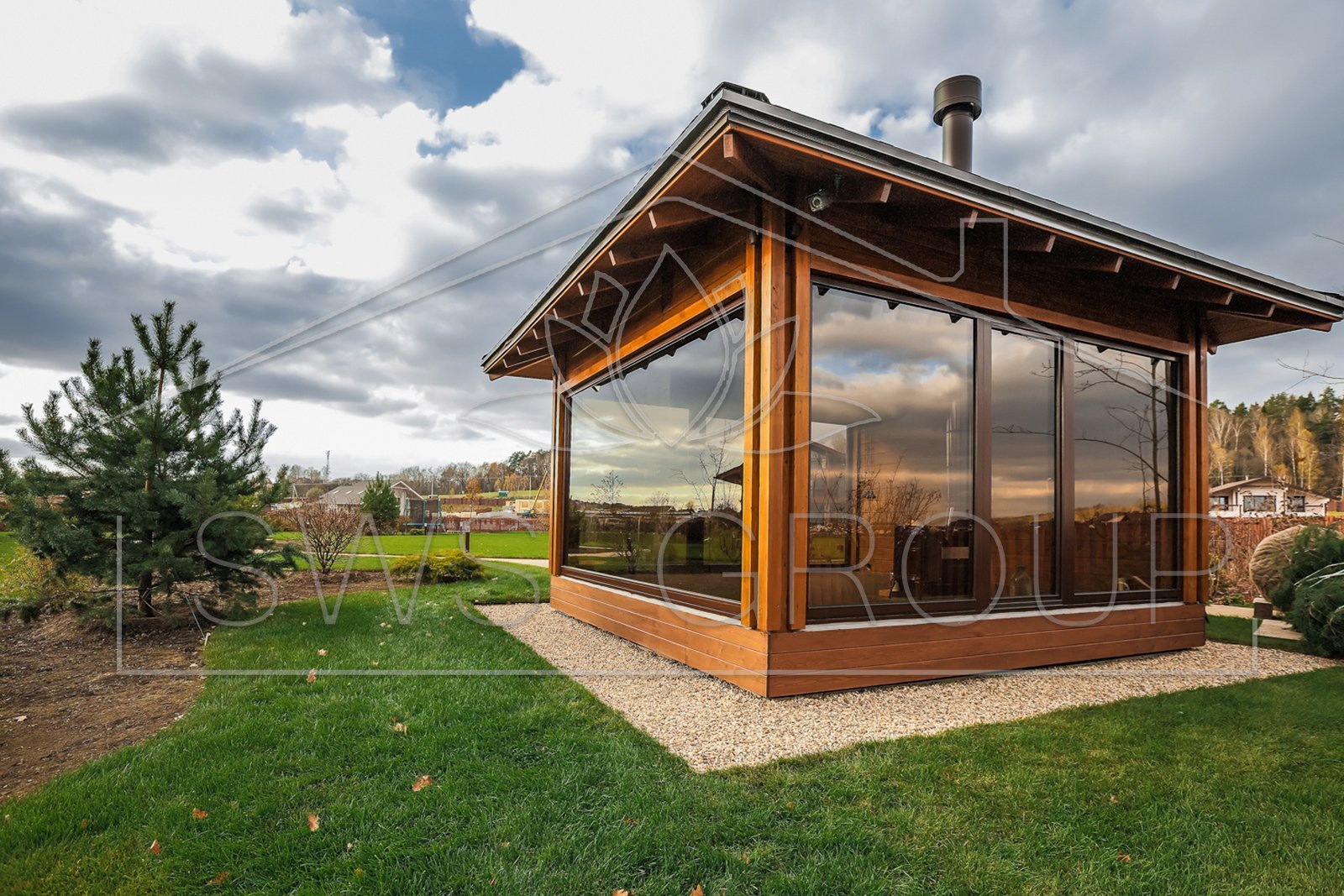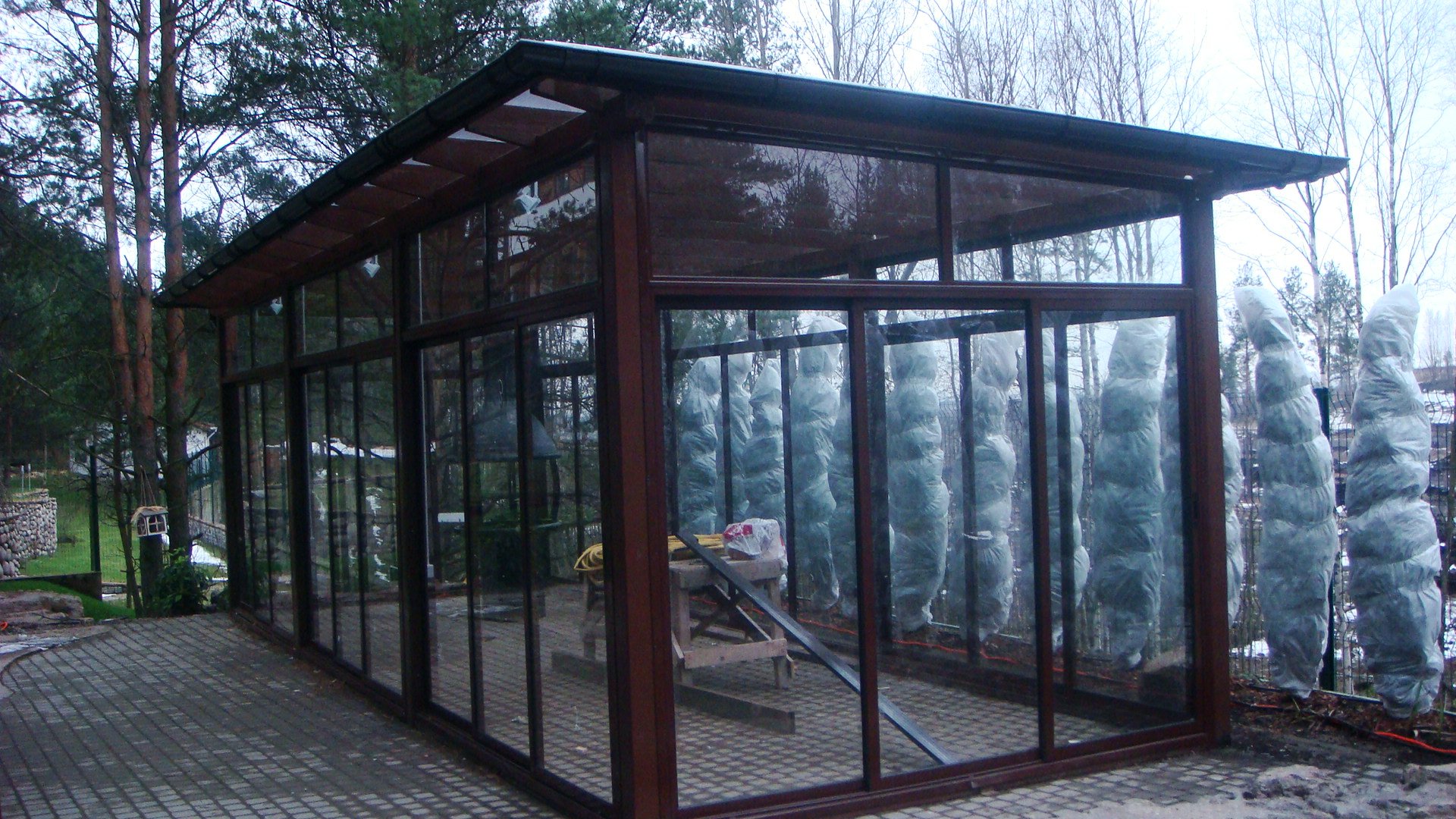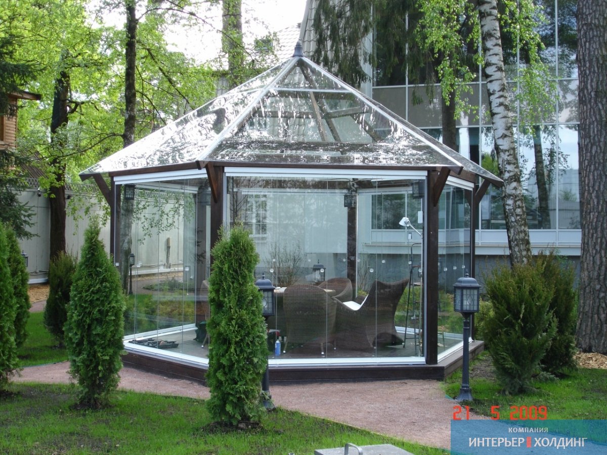 Беседка из кирпича застекленная АЛЮСТРОЙ