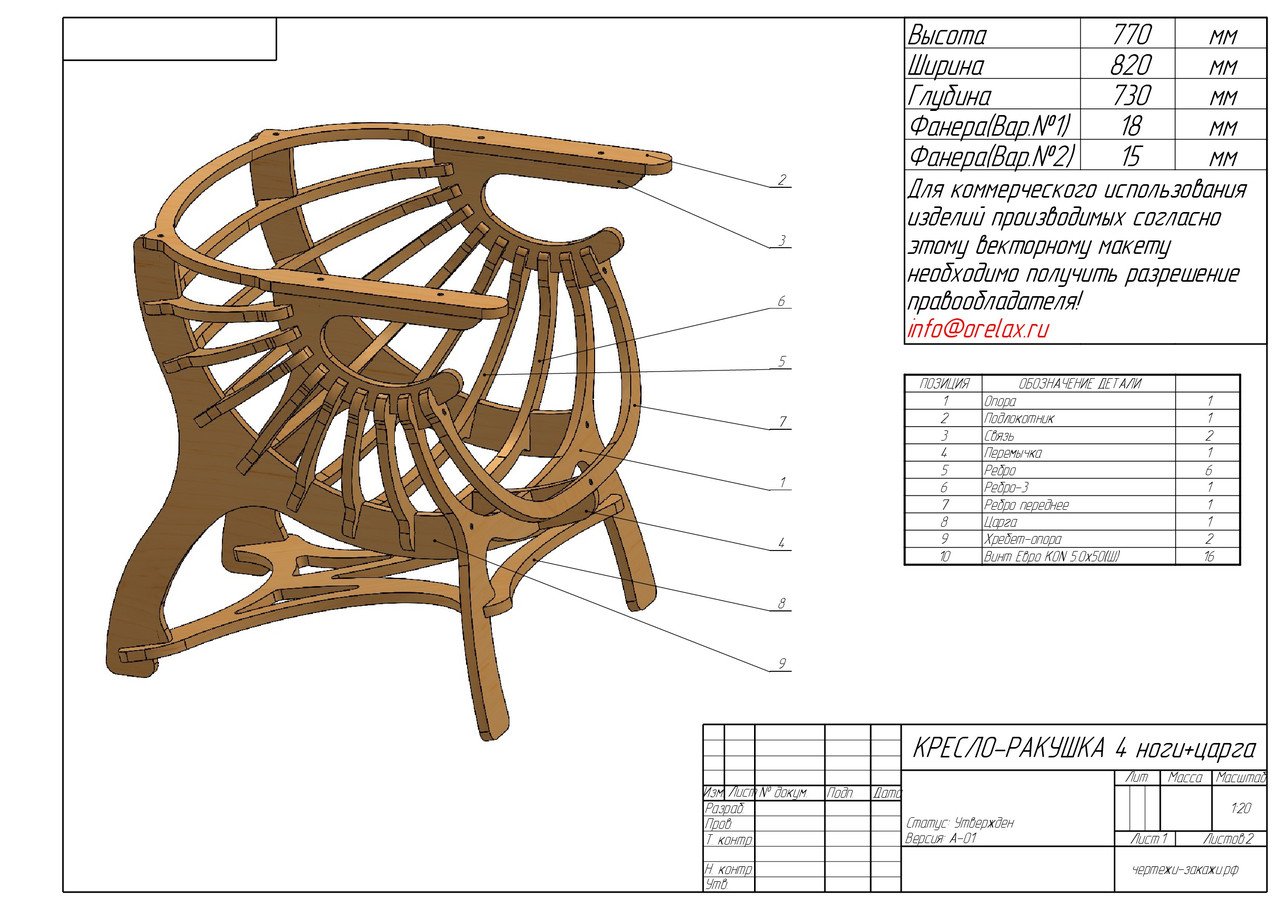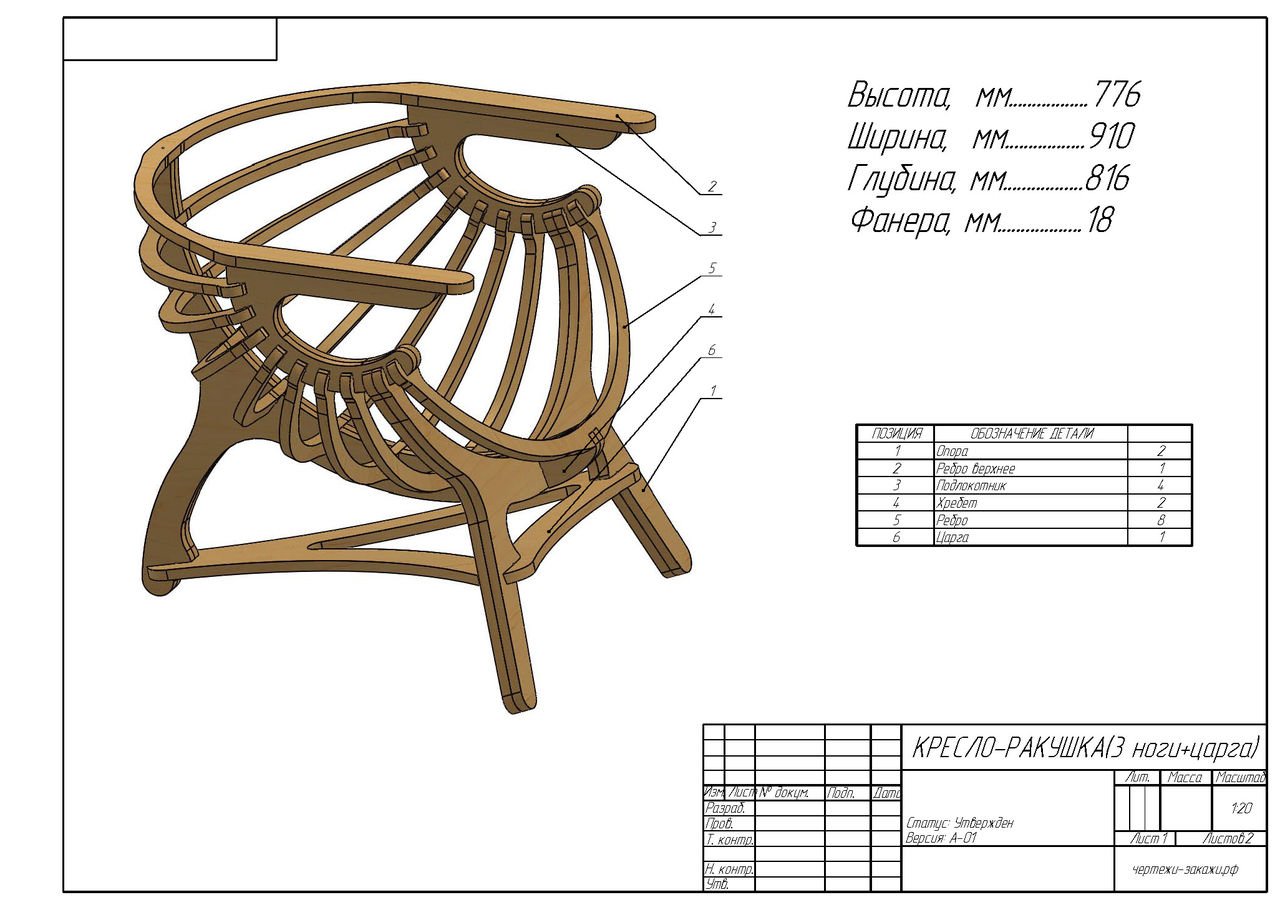 Кресло качалка из фанеры на ЧПУ чертежи