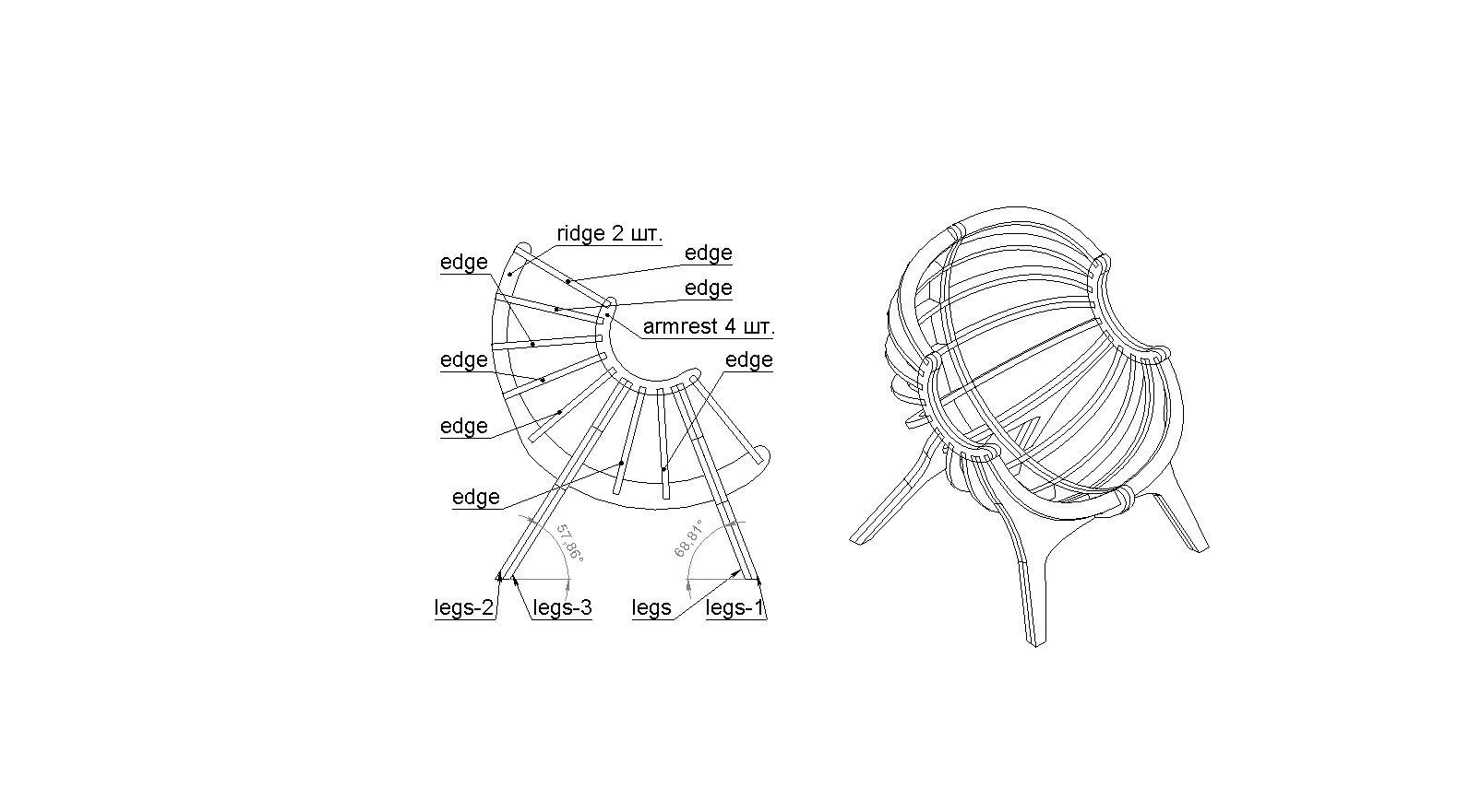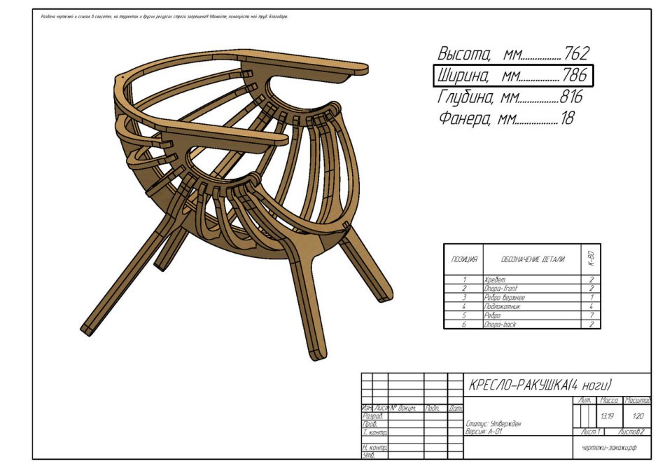 Кресло Ракушка из фанеры чертежи раскройка