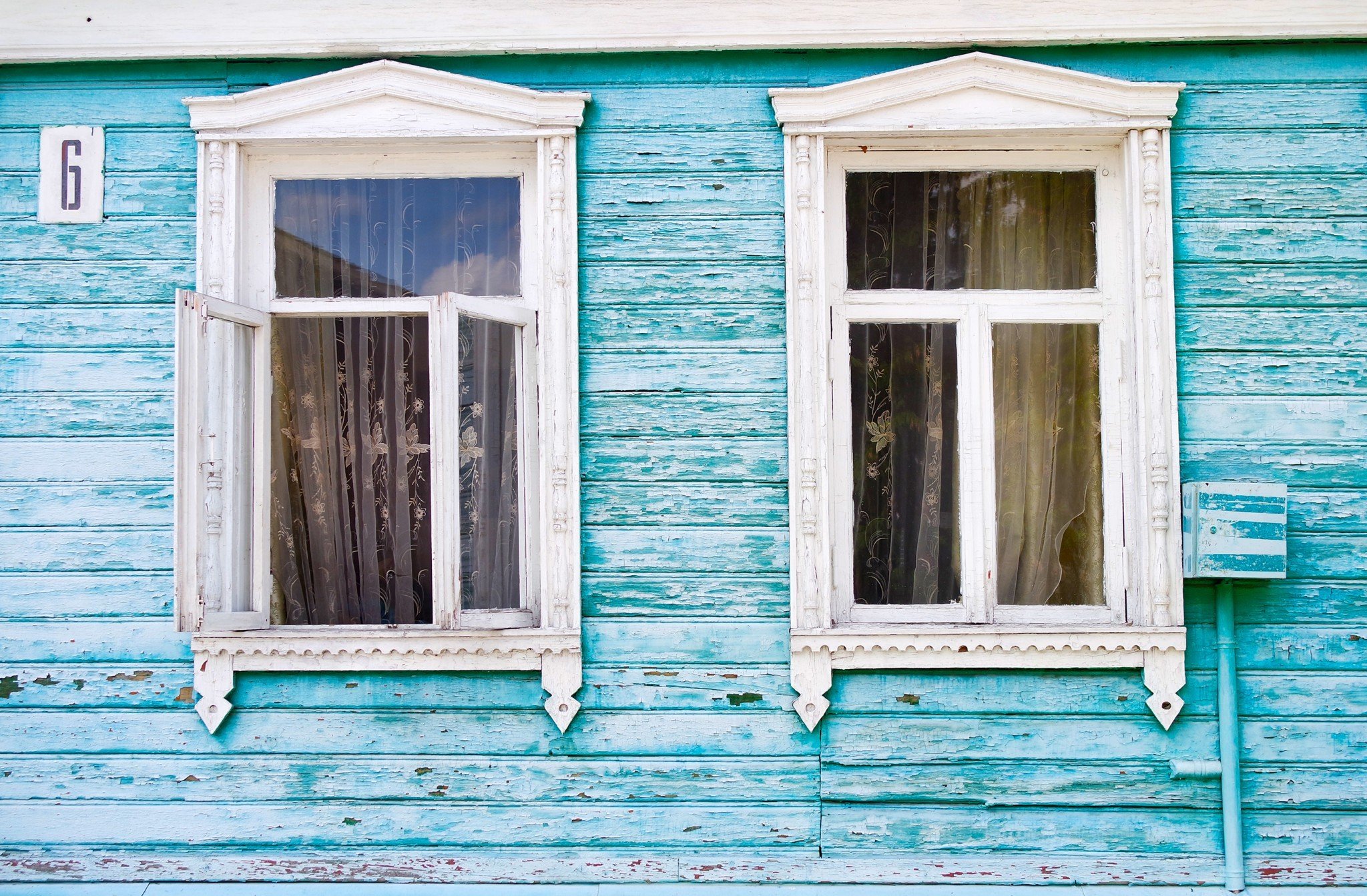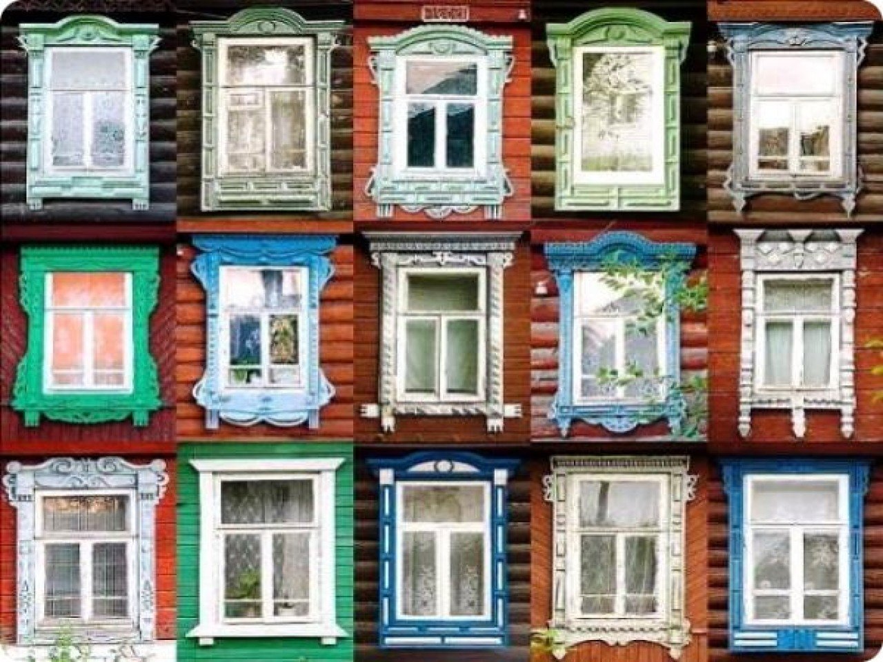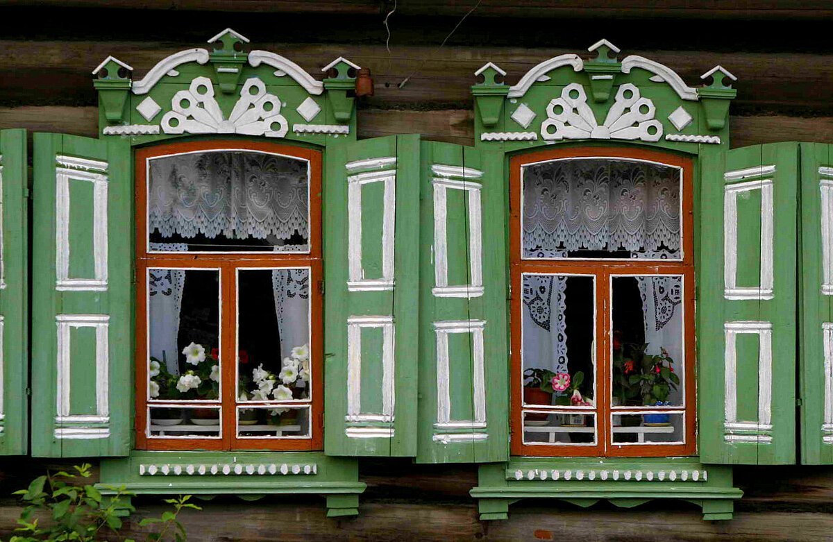 Деревенские окна с наличниками