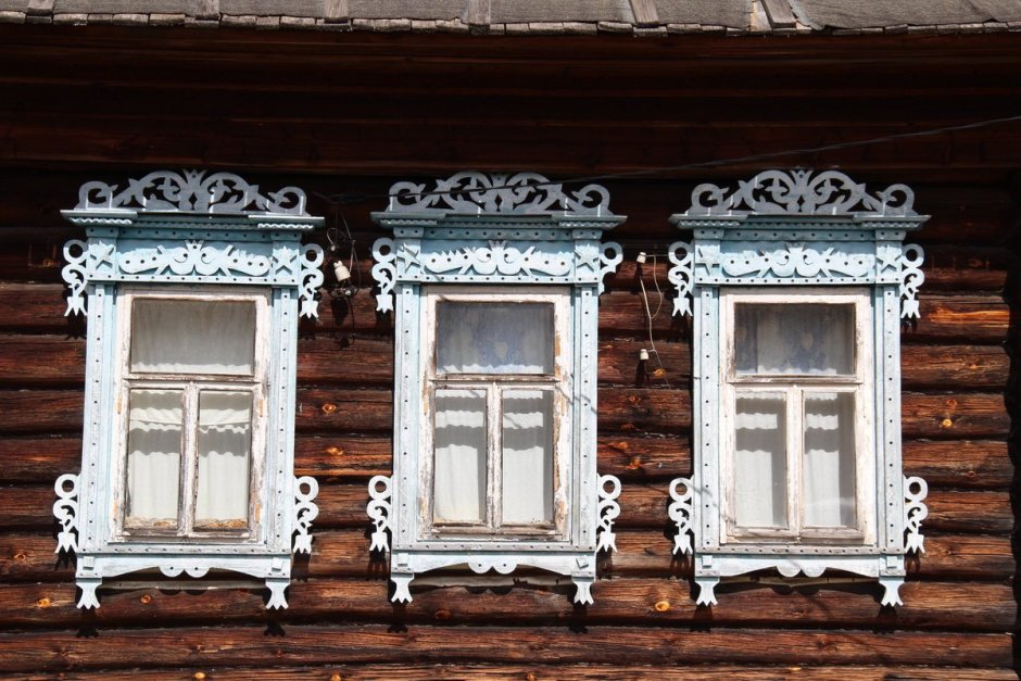 Старинные наличники на окна в деревянном доме