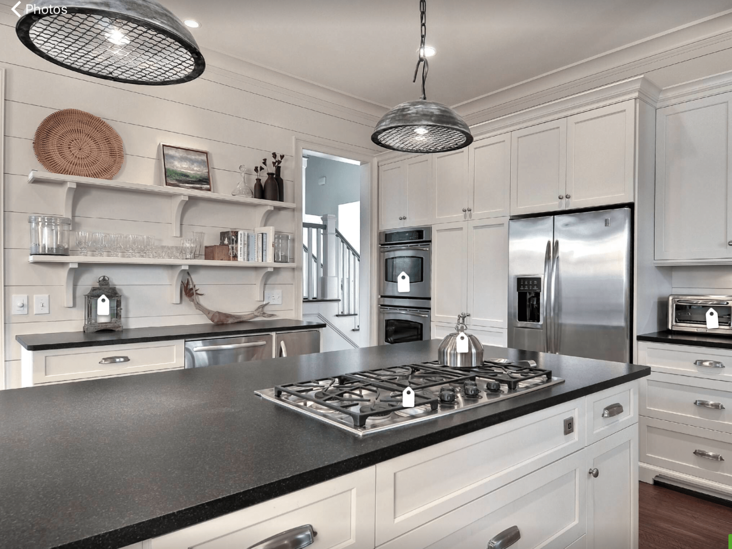 Белая кухня лофт с черной столешницей