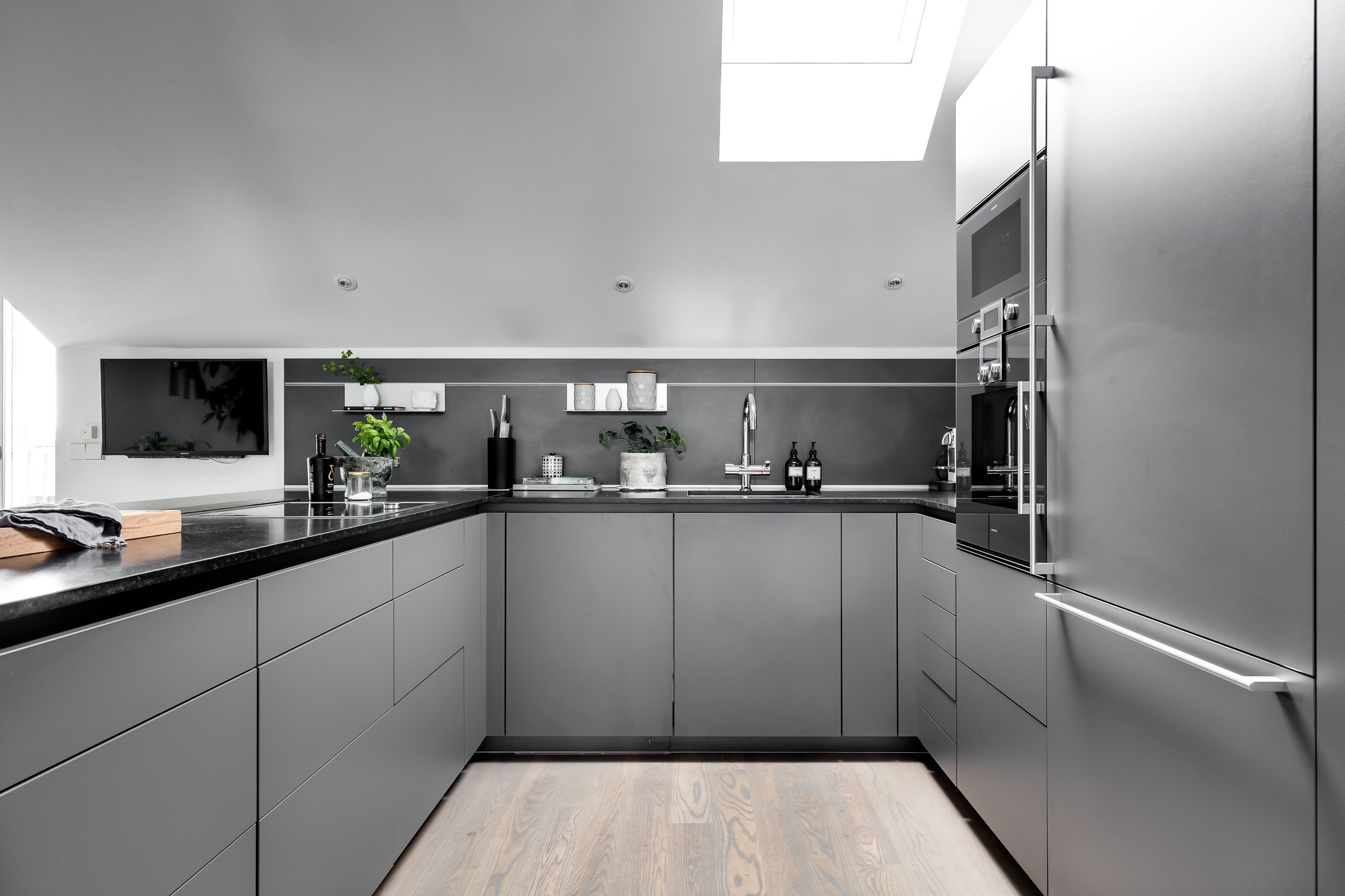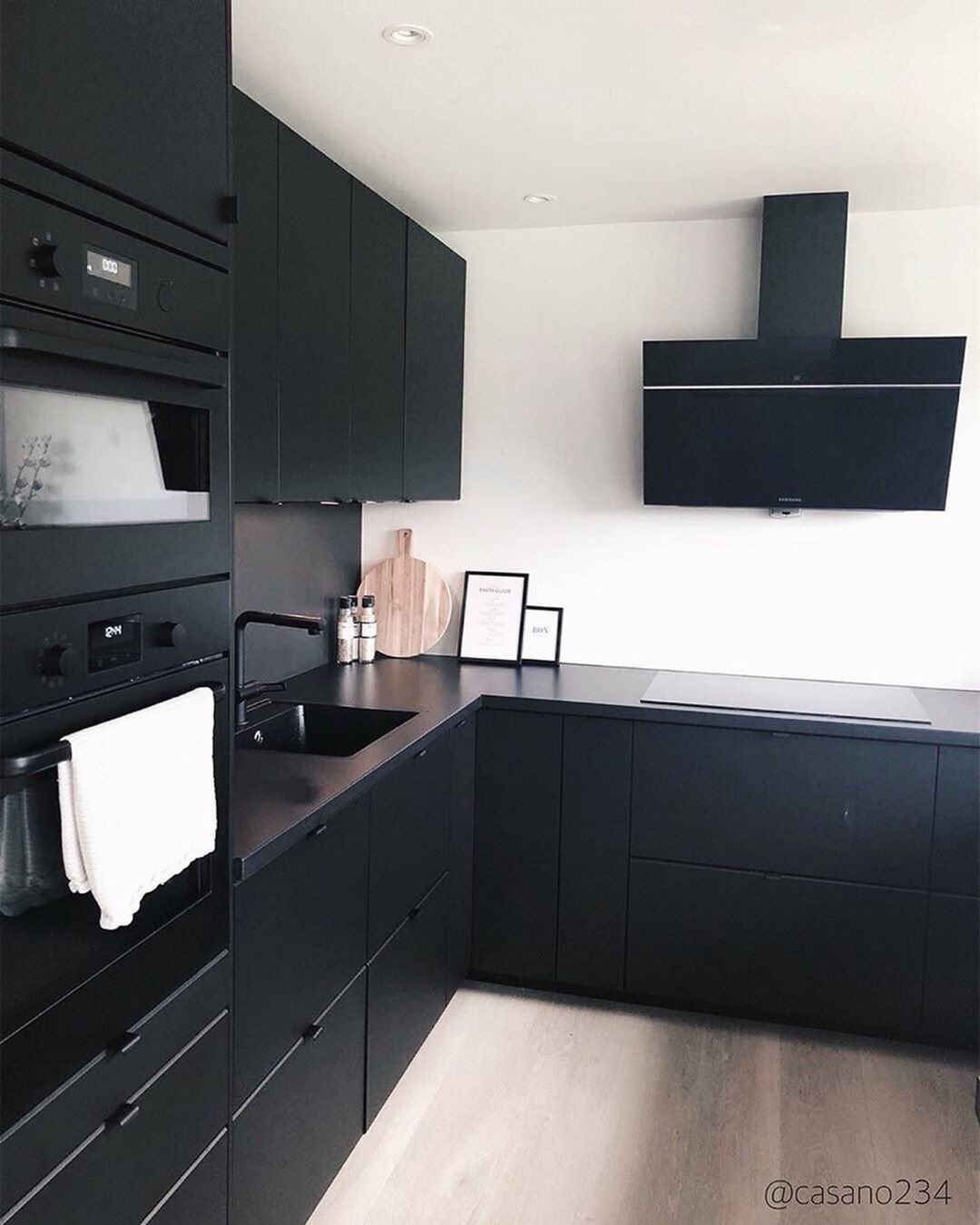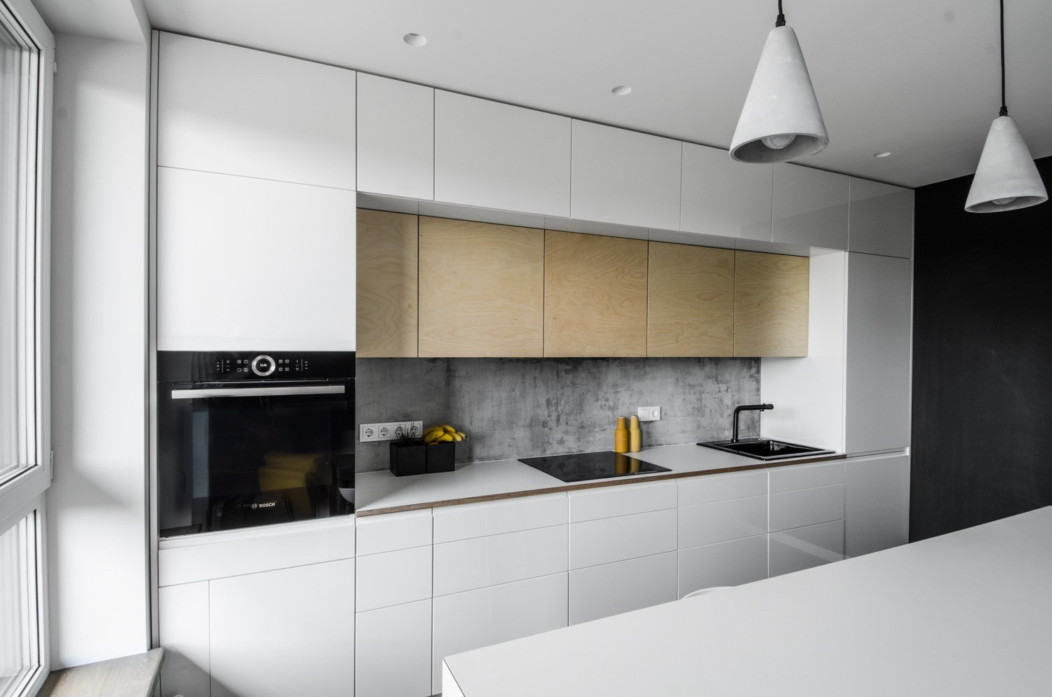 Кухня в скандинавском стиле с черной столешницей