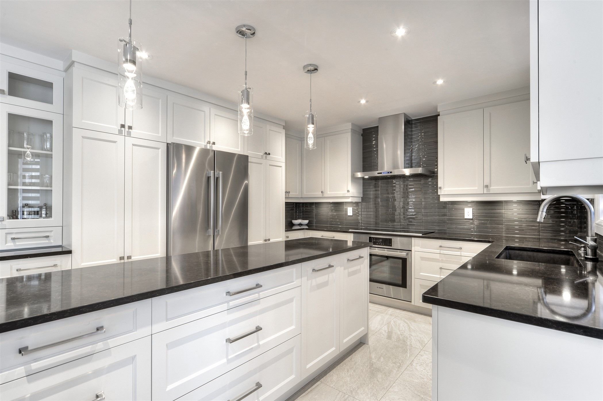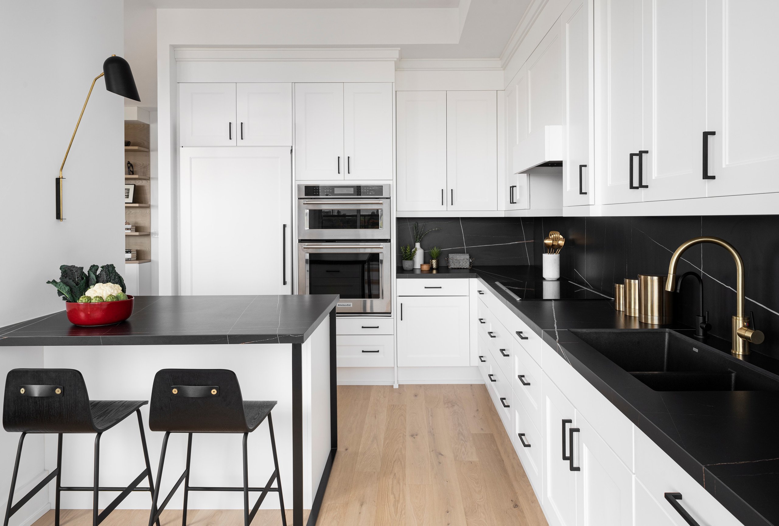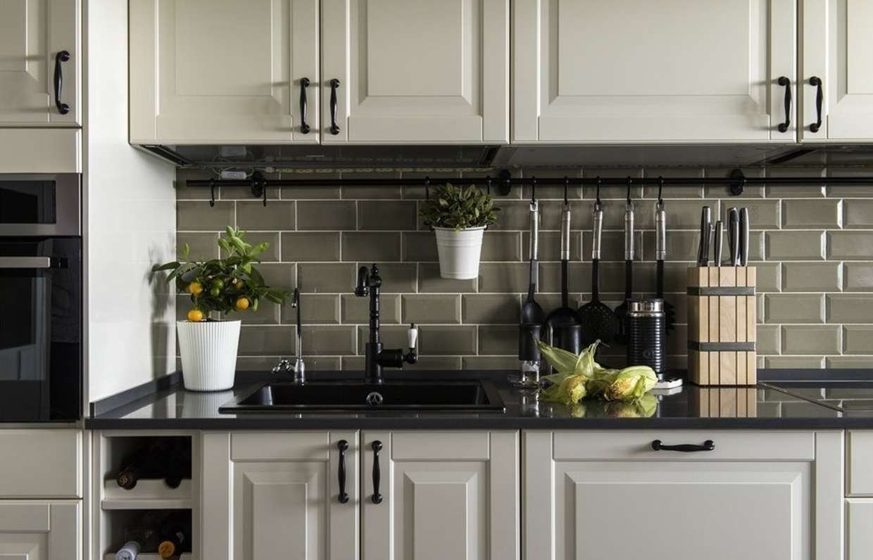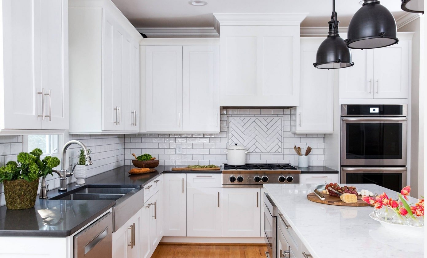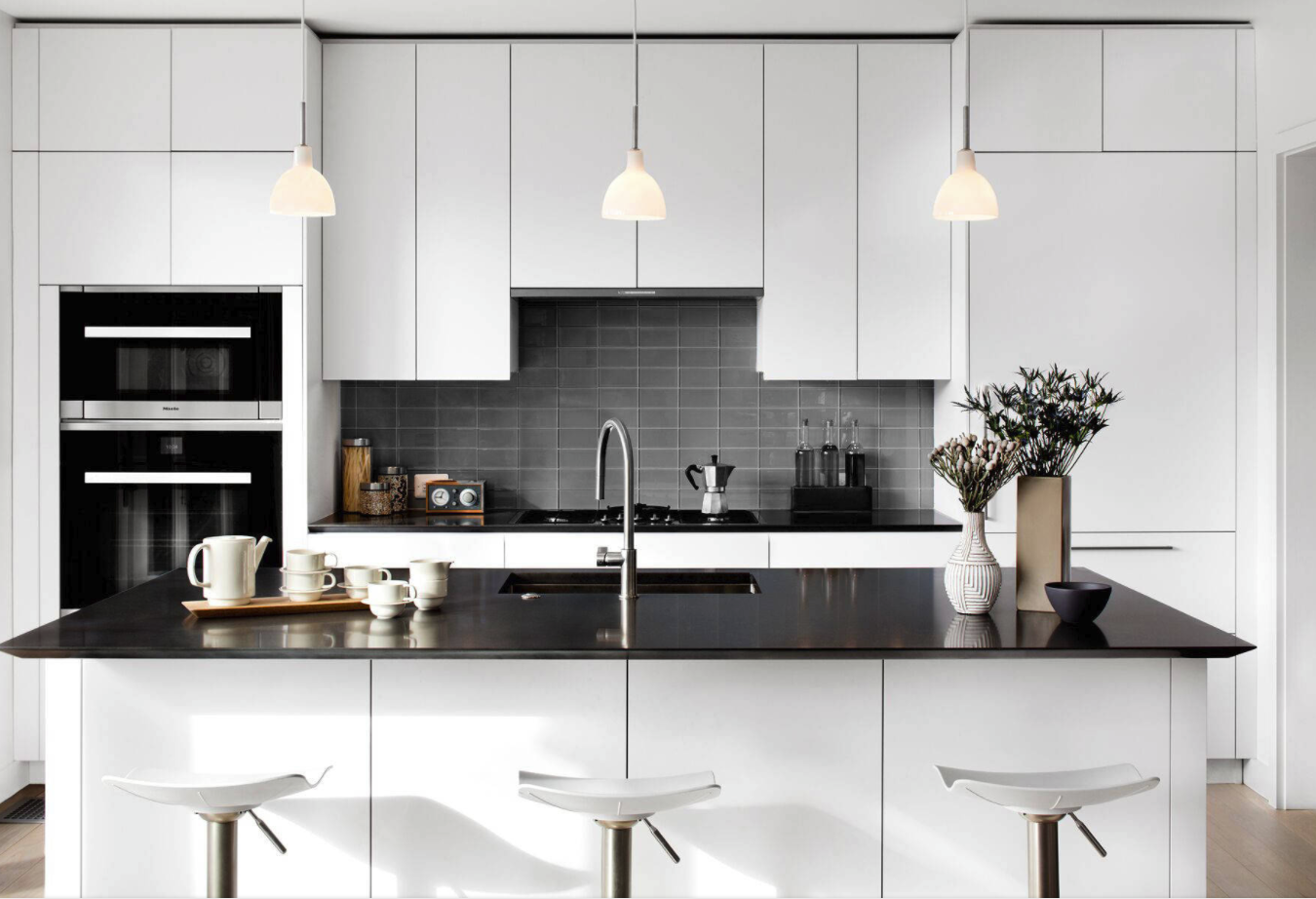 Фартук для белой кухни с черной столешницей
