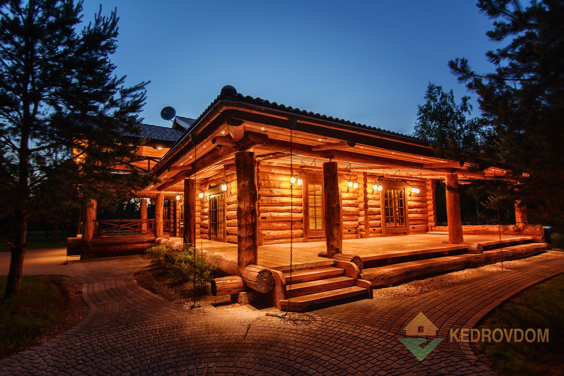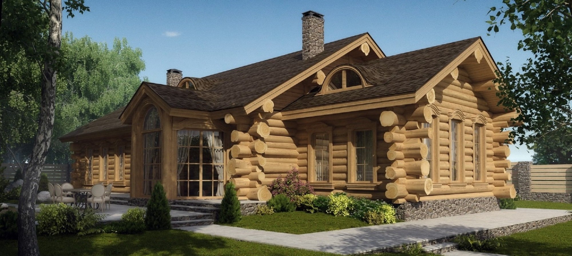 Красивые фасады одноэтажных домов из оцилиндрованного бревна