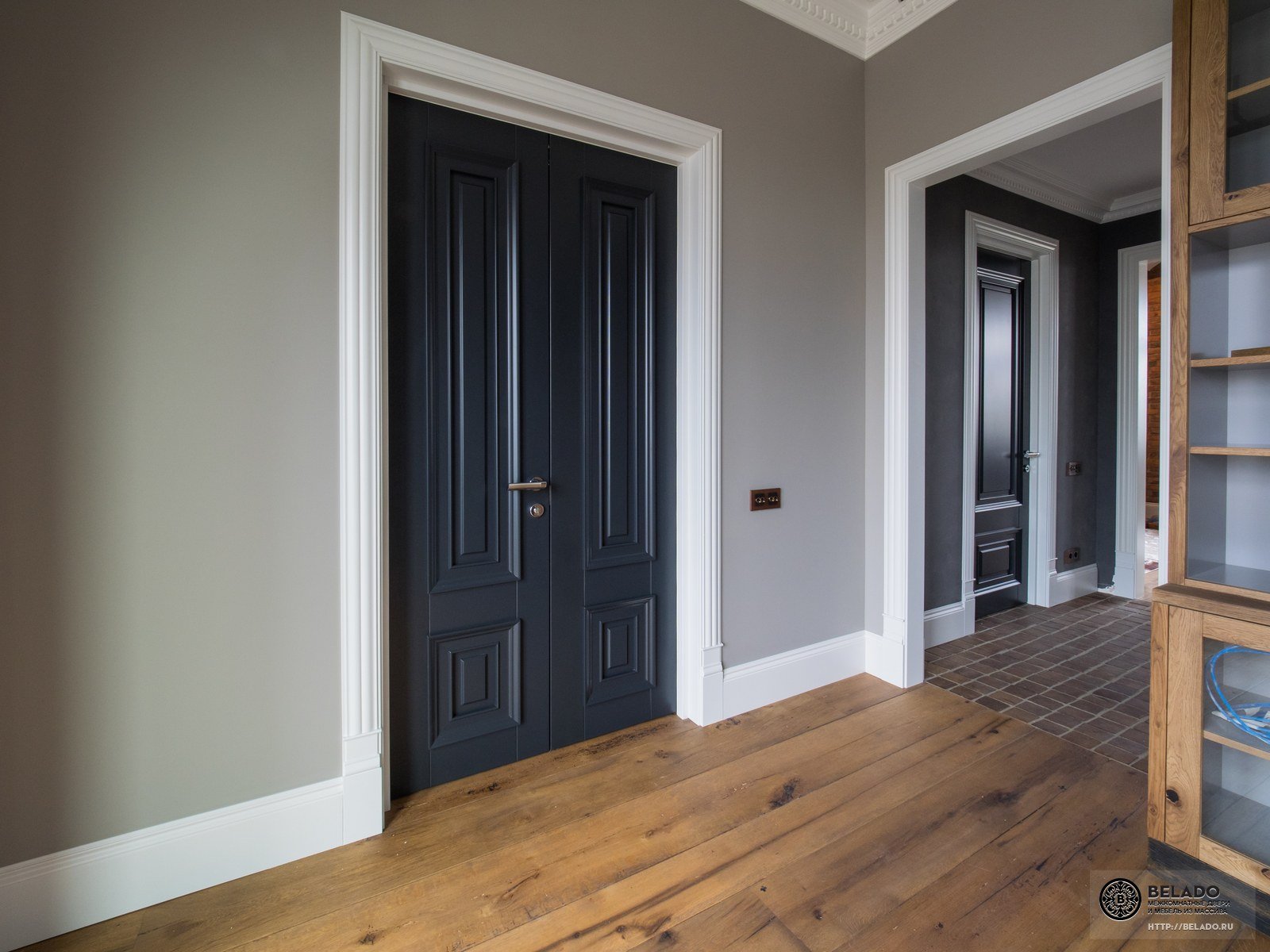 Серые двери и белый плинтус