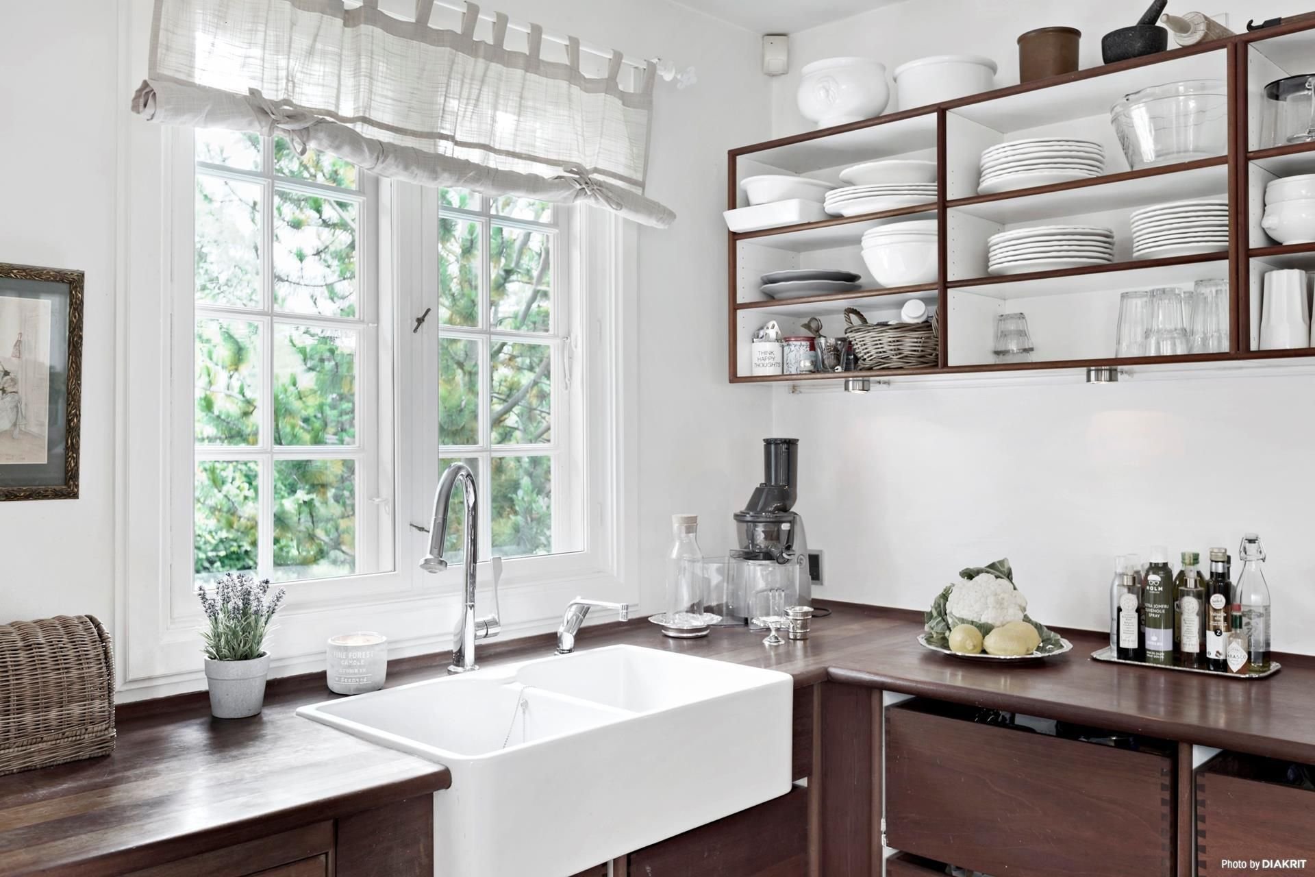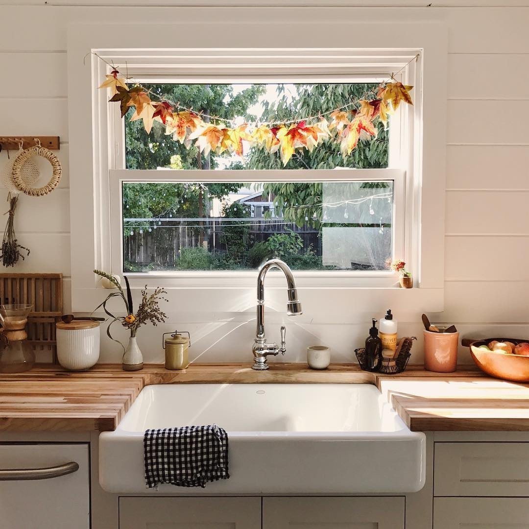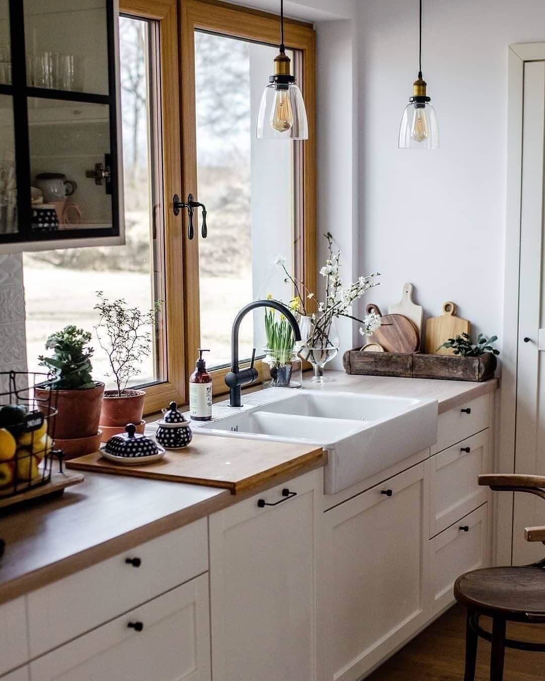Кухня с окном в сад