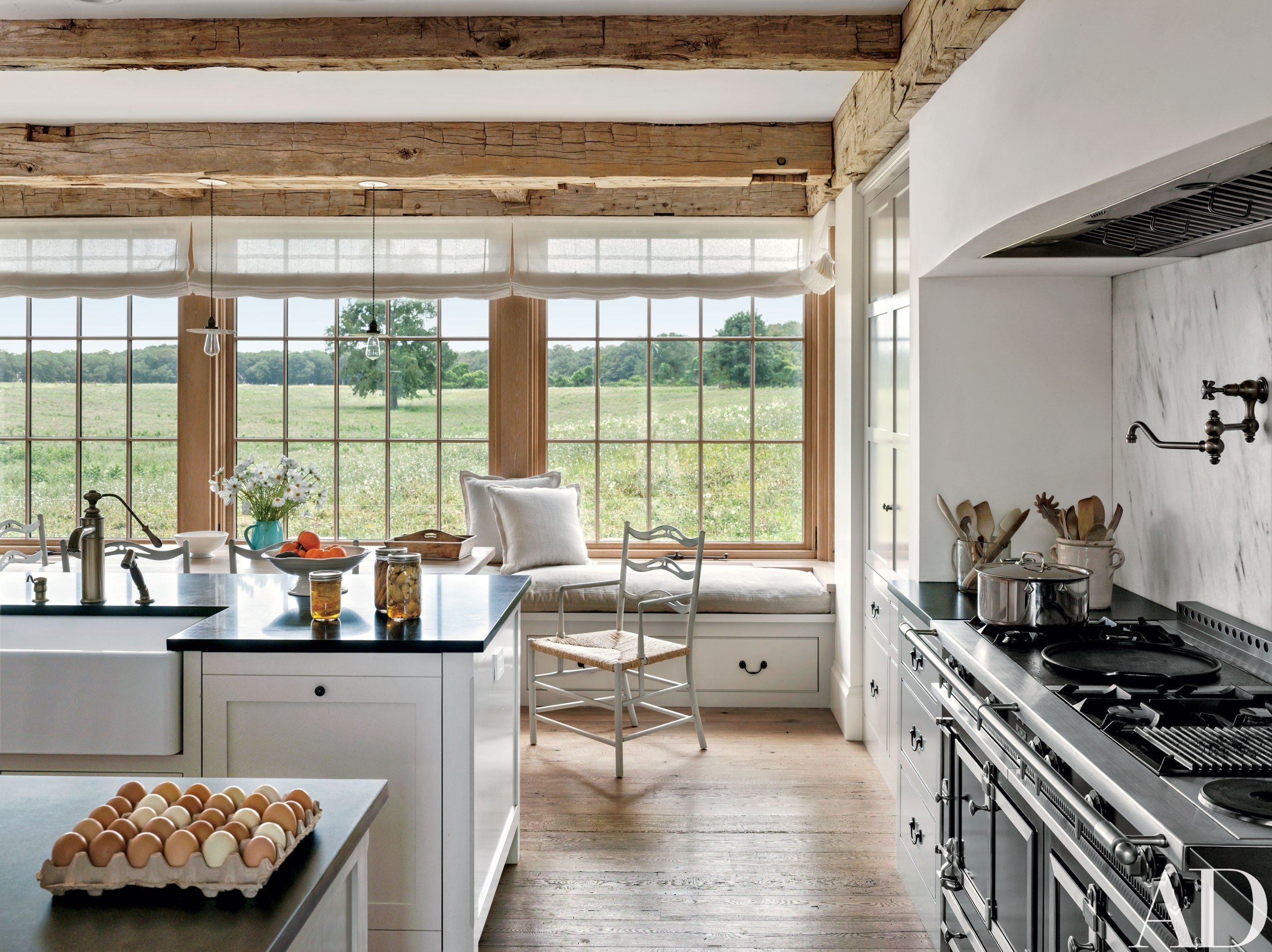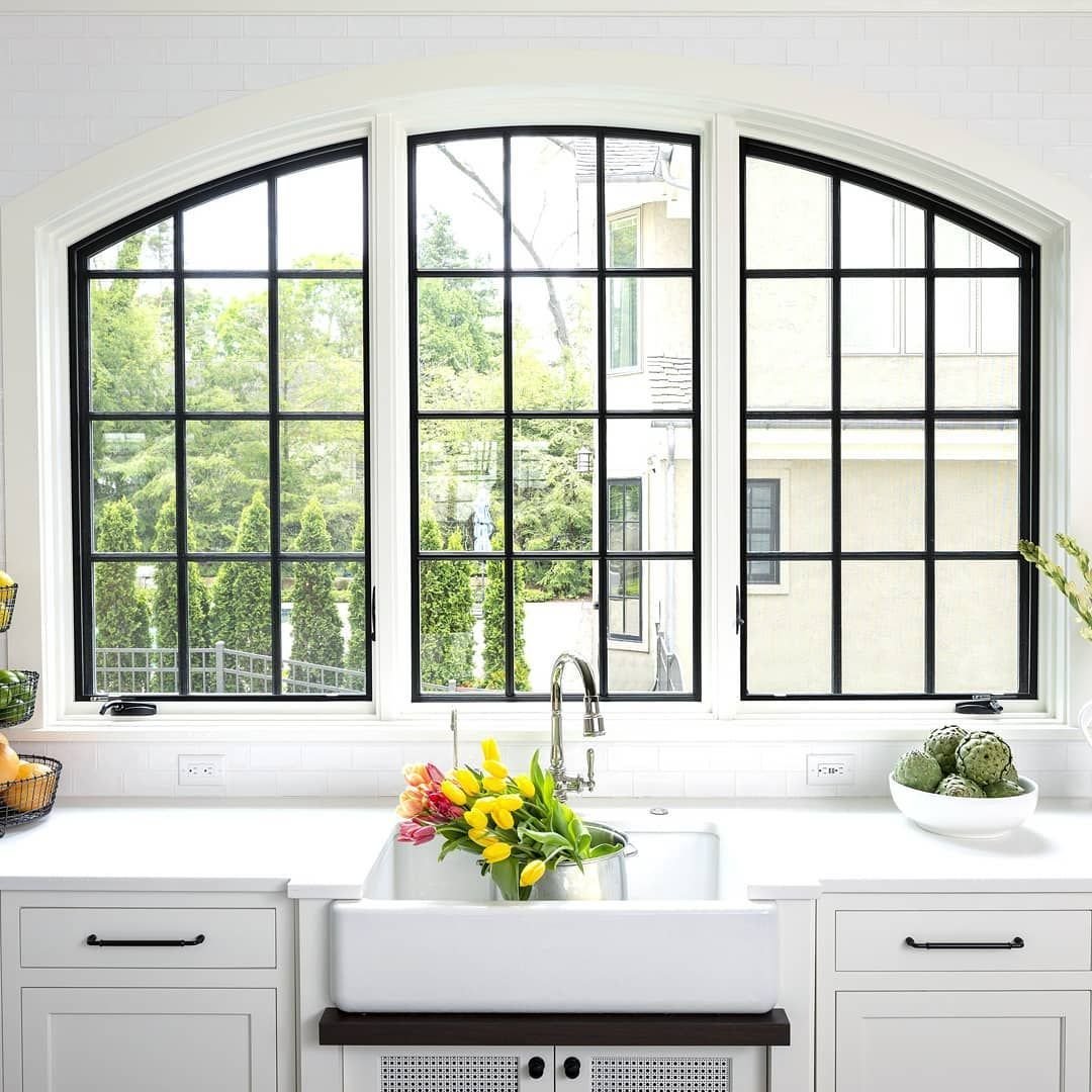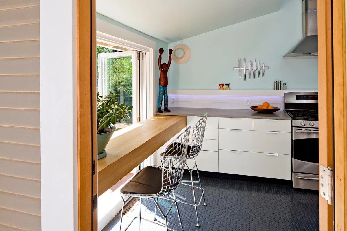 Интерьер кухни с большим окном