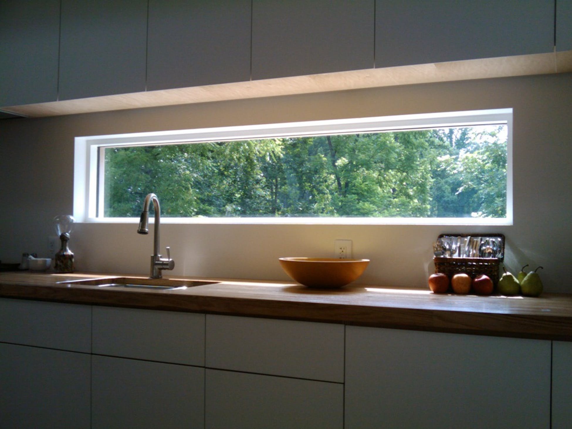 Узкое горизонтальное окно на кухне