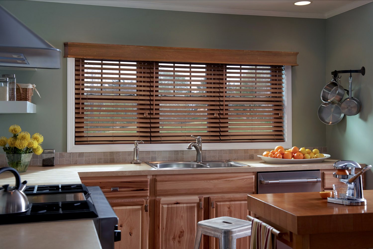 Деревянные жалюзи на кухне
