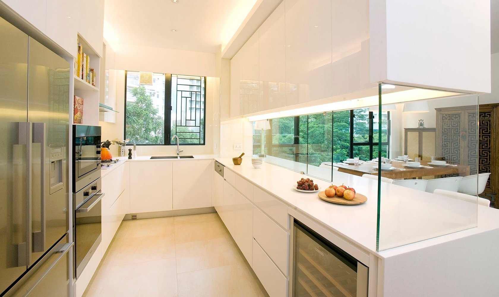 Белая кухня с панорамным окном